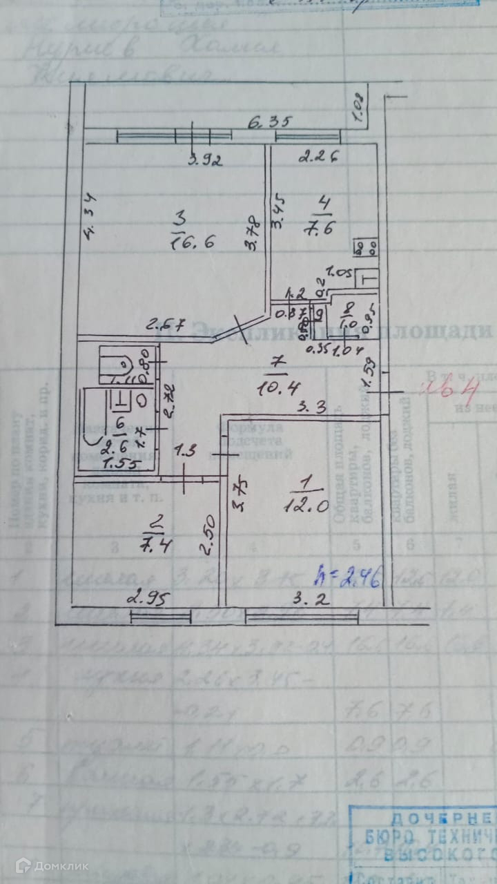 Общая площадь 61.7 м2