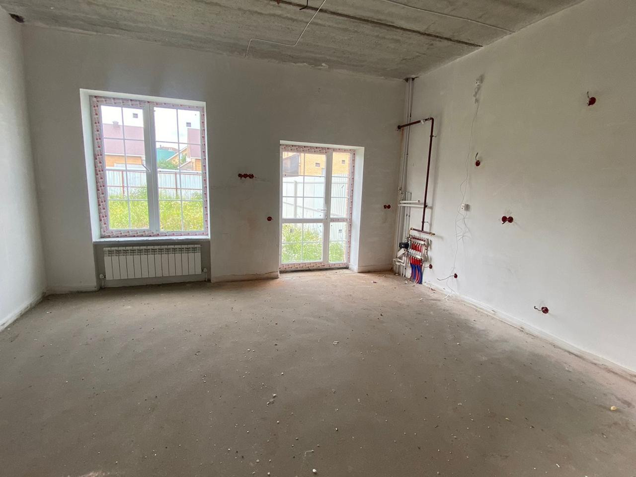 В таунхаусе выполнена качественная предчистовая отделка: теплые полы по всему периметру первого этажа, ровная стяжка, пластиковые окна, между этажами плиты перекрытия, установлен двухконтурный котел, радиаторы.