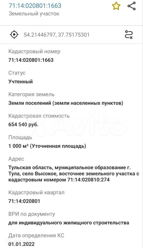 Продаётся участок ИЖС  в село Высокое, в Тульской области, кадастровый номер  71:14:020801:1663. Координаты : 54.21451784, 37.75190508. Площадь 10 соток, участок правильной формы один угол трапеция, ровный (разровнен трактором),  подъезд широкий. Близко КБП, Сплав.