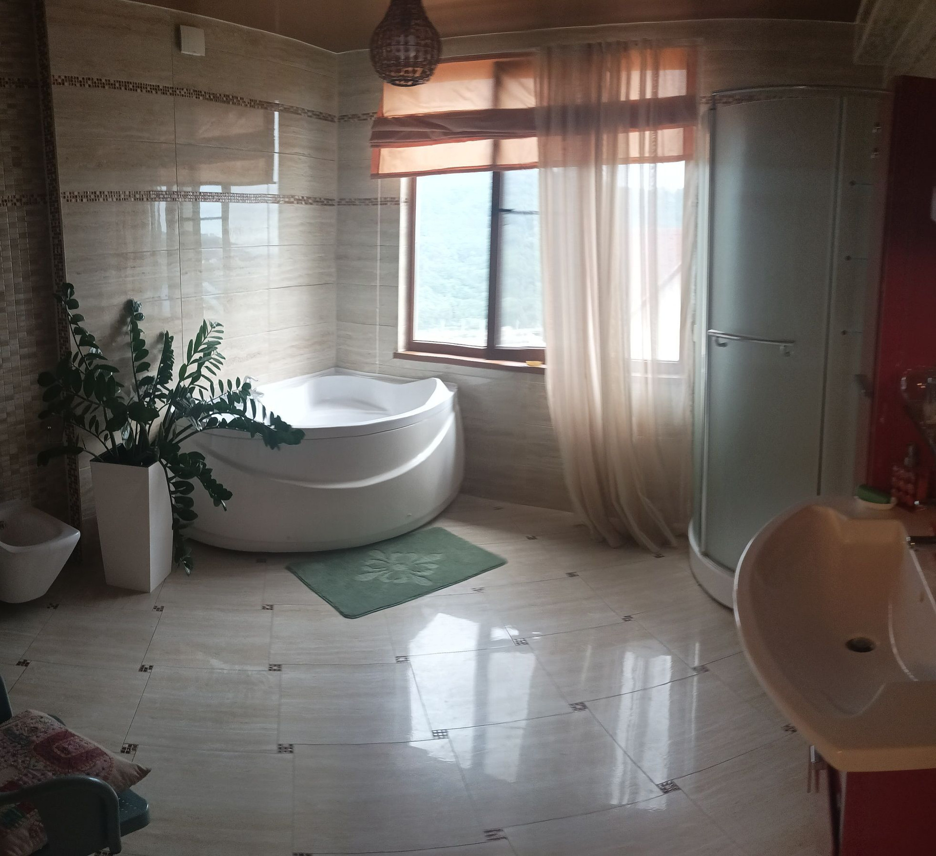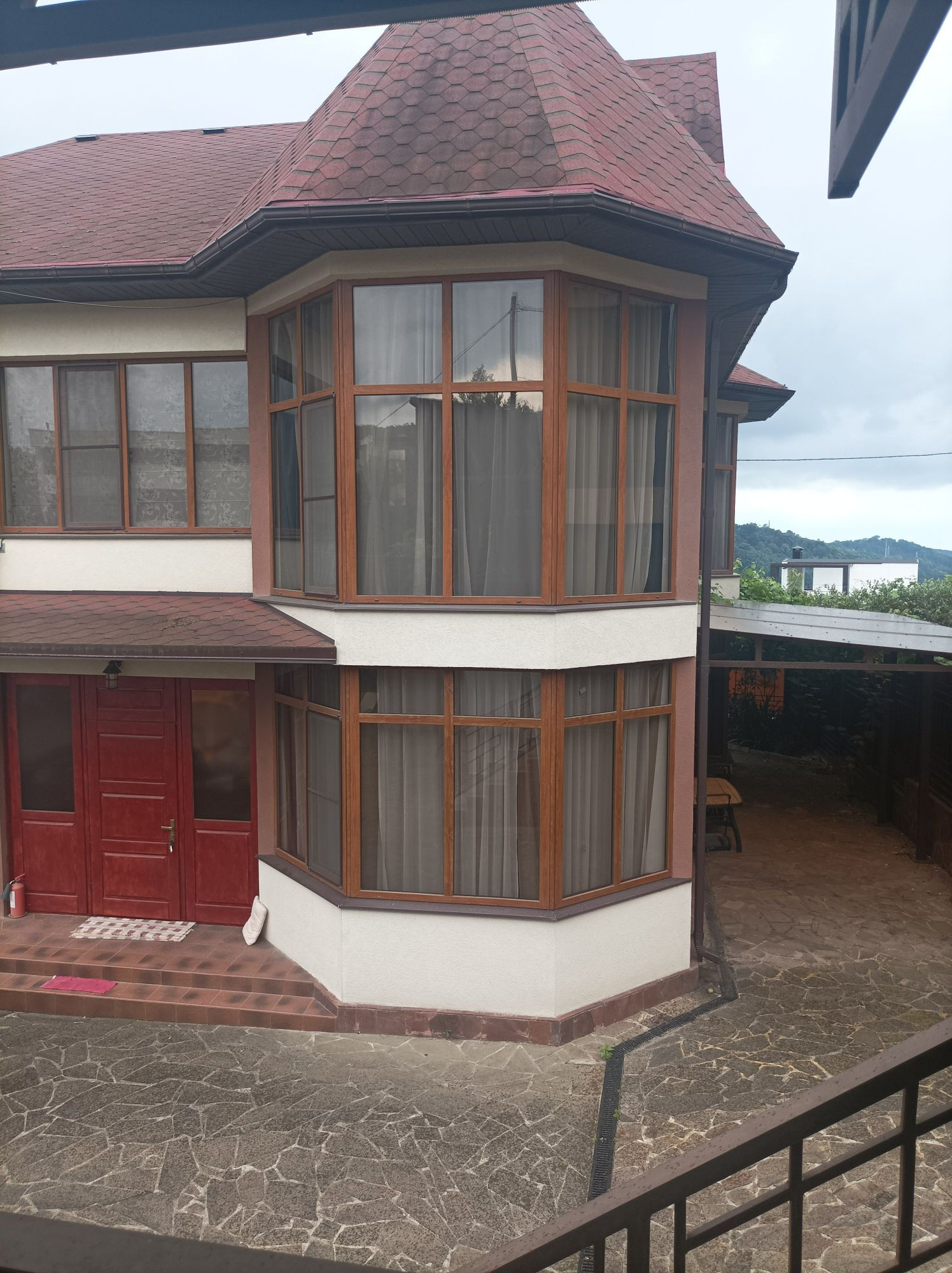 Просто сказочный панорамный вид из окон, и дом расположен на холме таким образом, что соседние дома не мешают простору...