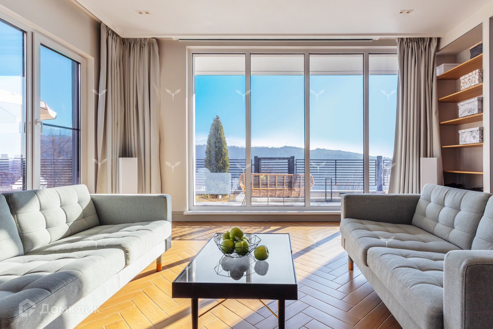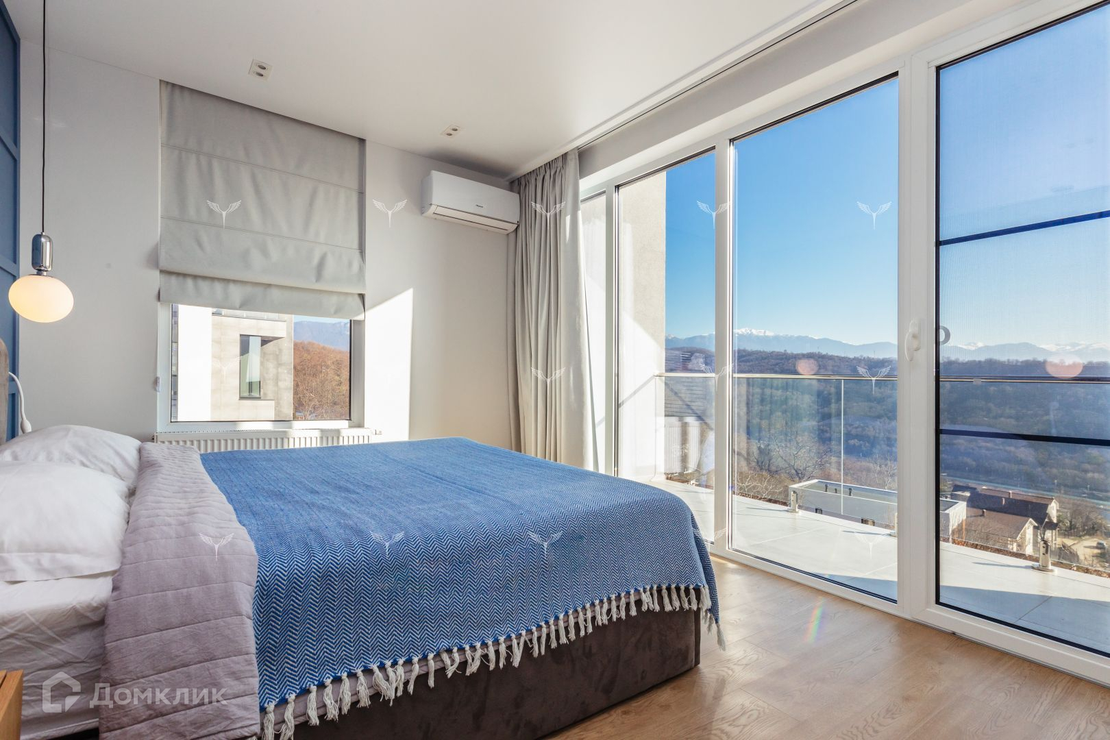 2 этаж: мастер-спальня с панорамным видом на горы, балконом, санузлом с окном и ванной и гардеробная, также две спальни и ещё один санузел. На видовой площадке расположена инфракрасная сауна из кедра с соляными пластинами, где можно с пользой провести вечер после катания на горных лыжах.