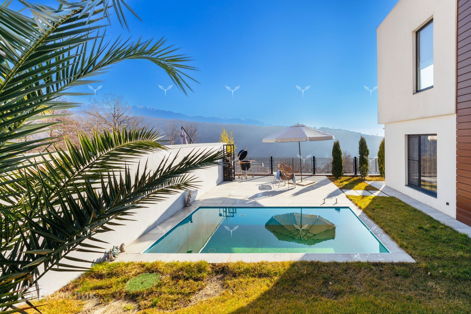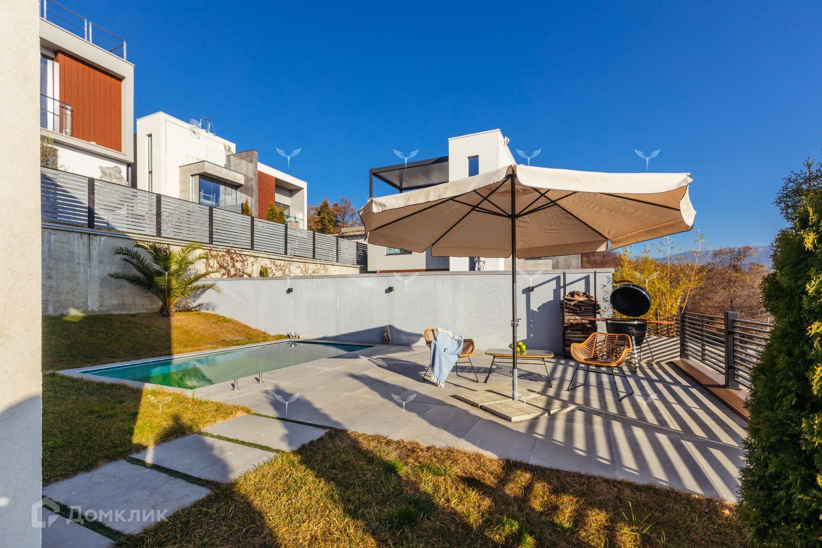 Дом 164 м² расположен в закрытом коттеджном поселке. 2 этажа плюс эксплуатируемая кровля 80 кв м. Участок 3,4 сотки с ландшафтным озеленением, автополивом Hunter (с датчиком дождя) и красивой уличной мебелью. Также на придомовой территории располагаются дровяной и газовый гриль Weber, где с легкостью можно приготовить очень вкусные блюда. Архитектурная подсветка дома и участка. Бассейн (5 на 3 метра) с автоматической фильтрацией воды и с возможностью нагрева ее до желаемой температуры благодаря французскому бесшумному газовому котлу De Dietrich.