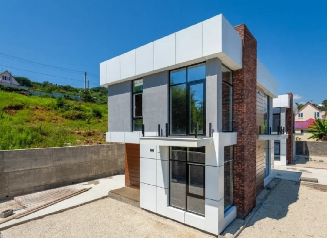 Участок 2,5 сотки. Земля ИЖС. Над летней кухней расположена терраса 40 метров, с которой идёт лестница на эксплуатируемую кровлю 60 метров. Дом монолитный, заполнение керамзитоблок, фасады алюкобонд, алюминевые стеклопакеты. Коммуникации: центральная вода, электричество 15 кВт, газ, септик. Возможна ипотека. При покупке сразу двух домов - ВНУШИТЕЛЬНАЯ СКИДКА!!!