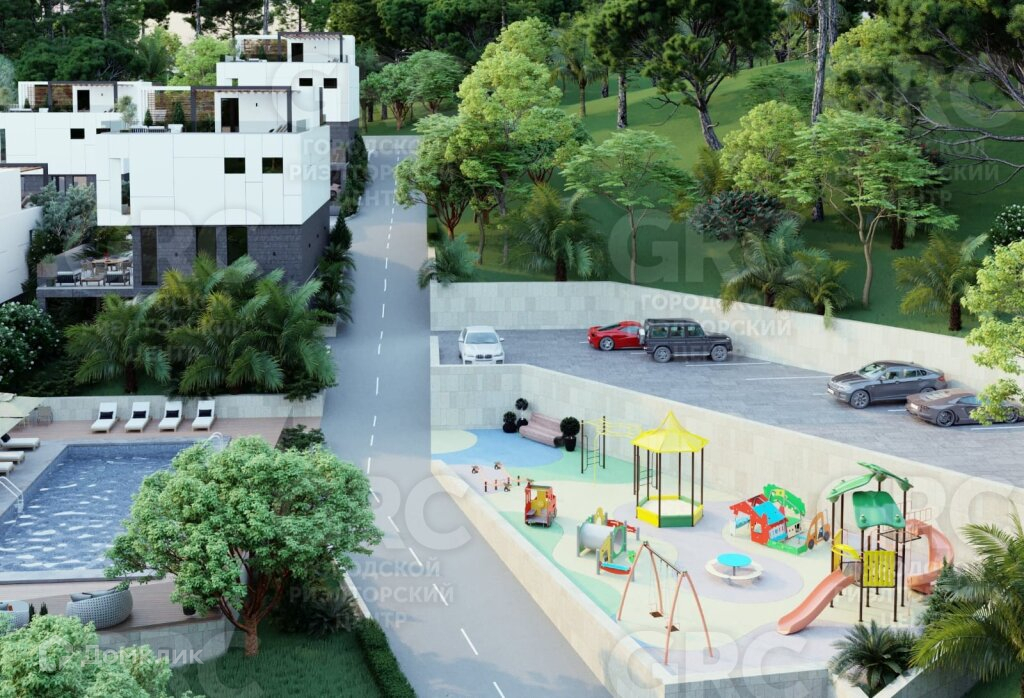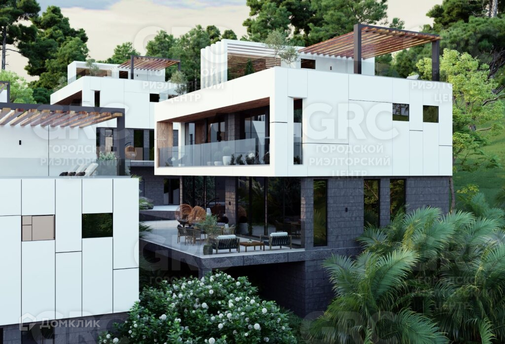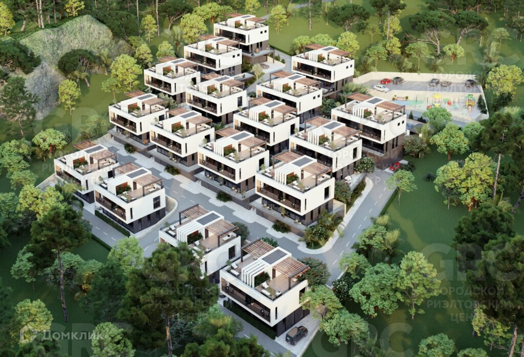 Уникальность объекта заключается в том, что вид всех вилл направлен на национальный парк, а так же у всех вилл эксплуатируемая крыша с перголами (рассеиватели света). Подобного проекта нет ни в одном другом коттеджном поселке в Адлере!