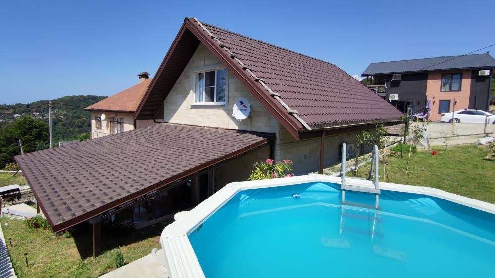 Село Молдовка, Адлер. В продаже мечта многих - уютный дом в горах среди вековых дубов, с бассейном и видом на море.  Отделка фасада выполнена дагестанским камнем. Общая площадь 112 кв. м. 1 этаж : холл, кабинет, просторный сан-узел, котельная, кухня-гостиная с выходом на террасу. 2 этаж: две большие спальни и сан-узел. В каждой комнате кондиционер. В доме выполнен качественный ремонт в светлых, спокойных тонах. Мебель и бытовая техника остаются в доме при продаже. Все коммуникации подключены - вода центральная,(установлена дополнительно система глубокой водоочистки) свет 15 квт, три фазы, магистральный газ, канализация - септик (ЛОС). С уютной террасы открываются красивые виды на море. Участок 4 сотки ЛПХ, ровный, в двух уровнях. Высажен молодой сад вишня, черешня, хурма, инжир, 2 сорта винограда. До центра Адлера и моря 10 км. До Красной Поляны 35 км. Документы готовы к сделке. Присвоен адрес. Постоянная регистрация. Возможна ипотека.