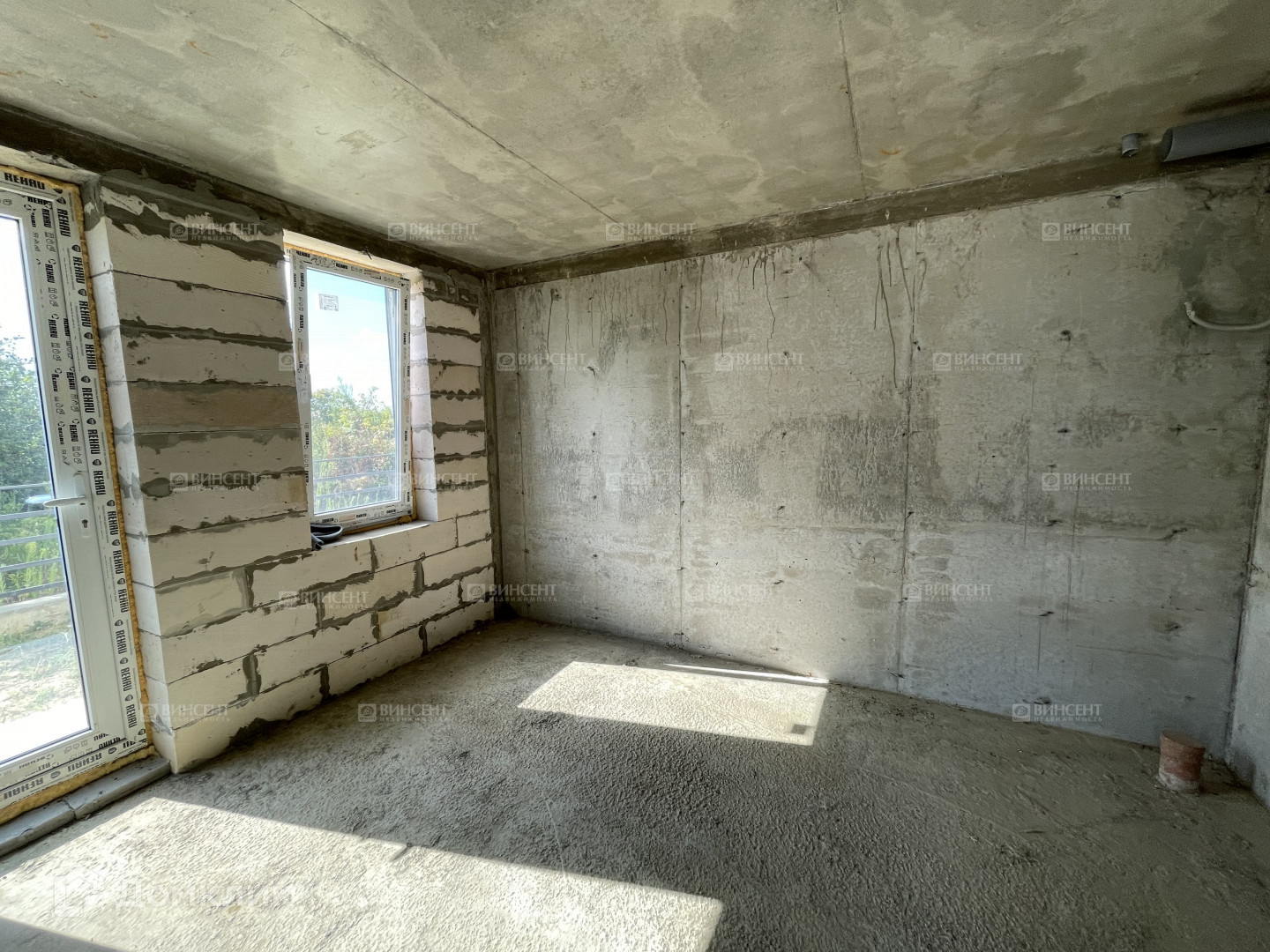 Капитальный монолитный каркас на 12 железобетонных сваях с газоблочным заполнением.