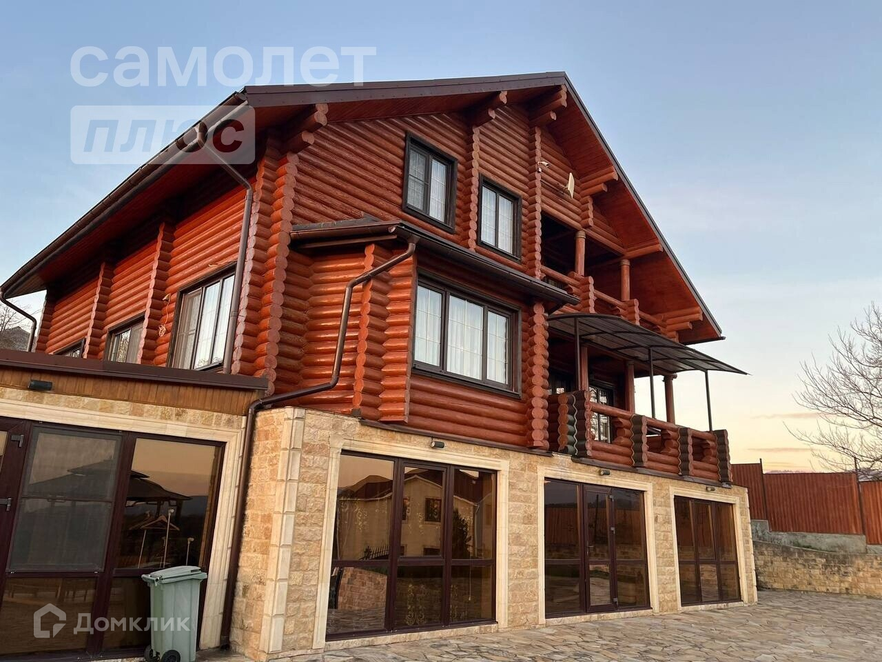 Второй и третий этажи выполнены из Новосибирского кедра, доставленного вертолетами. На территории имеется баня и бассейн.