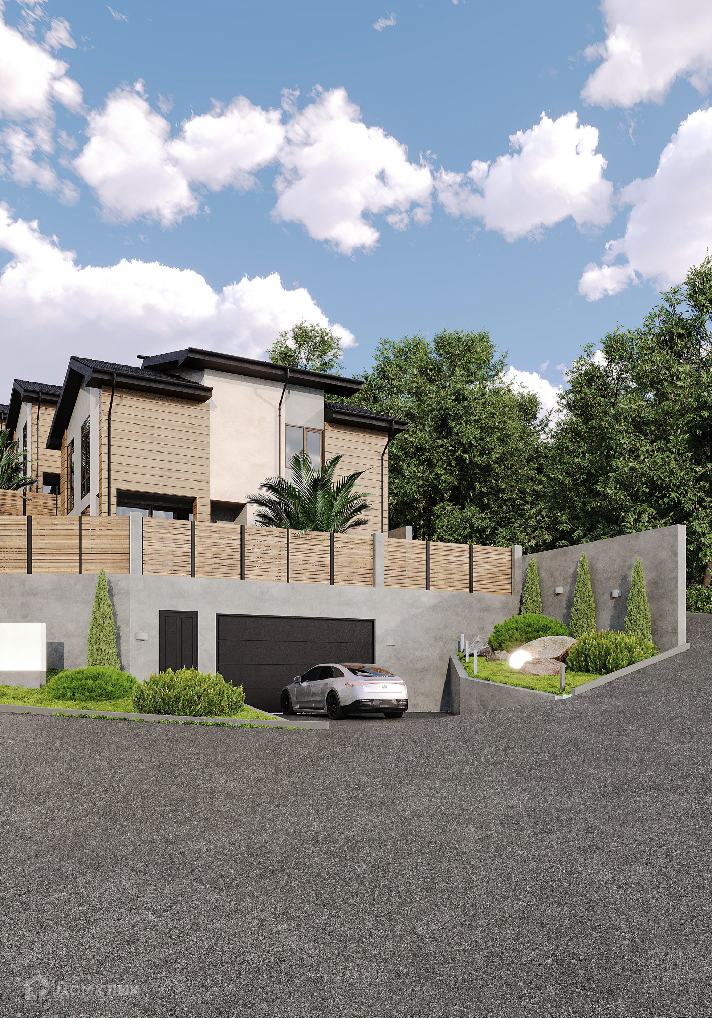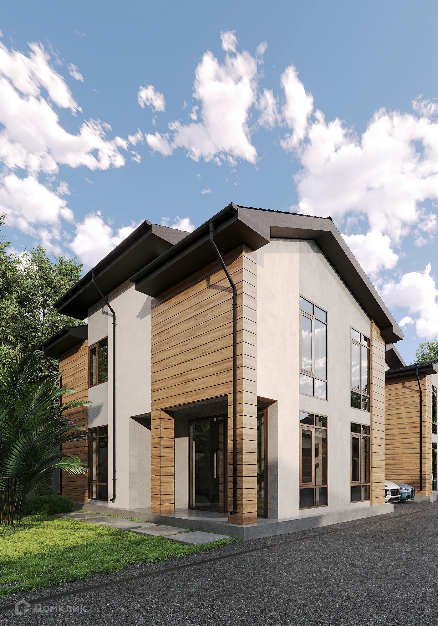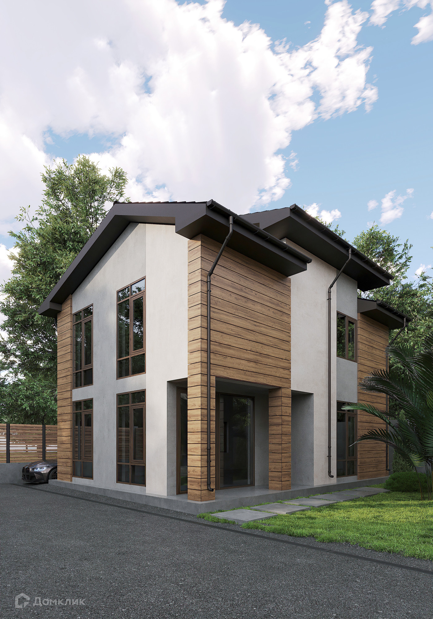 Стиль домов современная классика, фасад- алюкобонд  и каменная крошка.