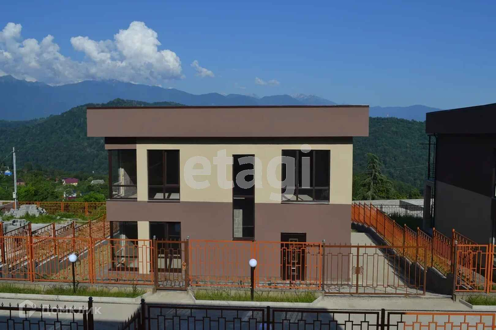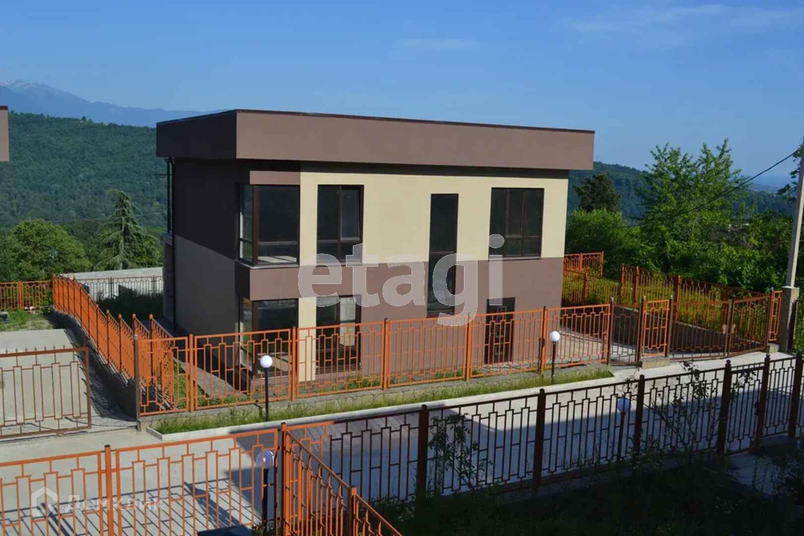 Оформлен в современном стиле, для комфортной жизни и отдыха. Есть котельная с отдельным входом. 1 этаж- кухня - столовая, с выходом на террасу, с панорамными окнами на горы. Гостиная с панорамными окнами с выходом во двор. 2 этаж - 3 спальни: с одной выход на террасу, с другой выход на балкон. Вода из собственной скважины. Площадь земельного участка 6 соток, на участок завезен чернозем.