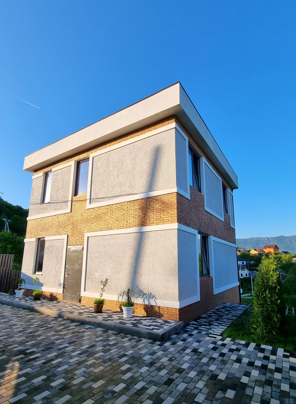 Описание: Современный дом в стиле Hi-tech построен по уникальному проекту, содержащем все разделы, включая геологические изыскания, геодезию, архитектурные решения и конструкции, разработанном с учетом сейсмичности региона; в процессе строительства были учтены все градостроительные регламенты, коттедж строился по разрешительной документации. Конструктивные части здания выполнены по всем требованиям проектирования для сейсмических районов: фундамент- железобетонные сваи, вбитые в аргиллит в количестве 14 шт армированная ж/б плита, несущая система здания ж/б каркас, заполнение стен керамзитоблок 250 мм. Все стены дома по периметру утеплены фасадной базальтовой ватой, армированной ПВХ сеткой, с последующей декоративной отделкой -штукатуркой короед. Все без исключения строительные материалы, использованные при строительстве высокого качества. Коттедж распланирован, общей площадью 212 кв.м.с цокольным помещением, балконом и террасами ( по выписке жилая площадь 155.3 кв.м.):цокольное помещение, первый этаж: -прихожая, санузел, спальня, кухня-гостиная с выходом на террасу, второй этаж: три спальни, санузел, балкон. Есть возможность сделать крышу эксплуатируемую.