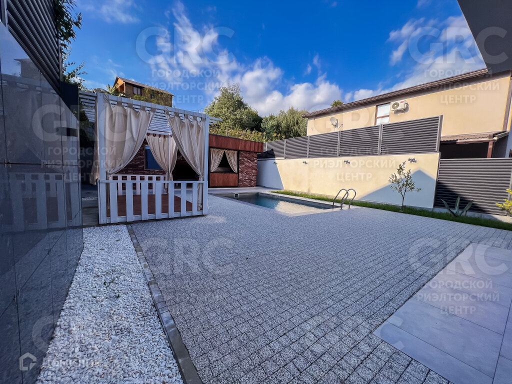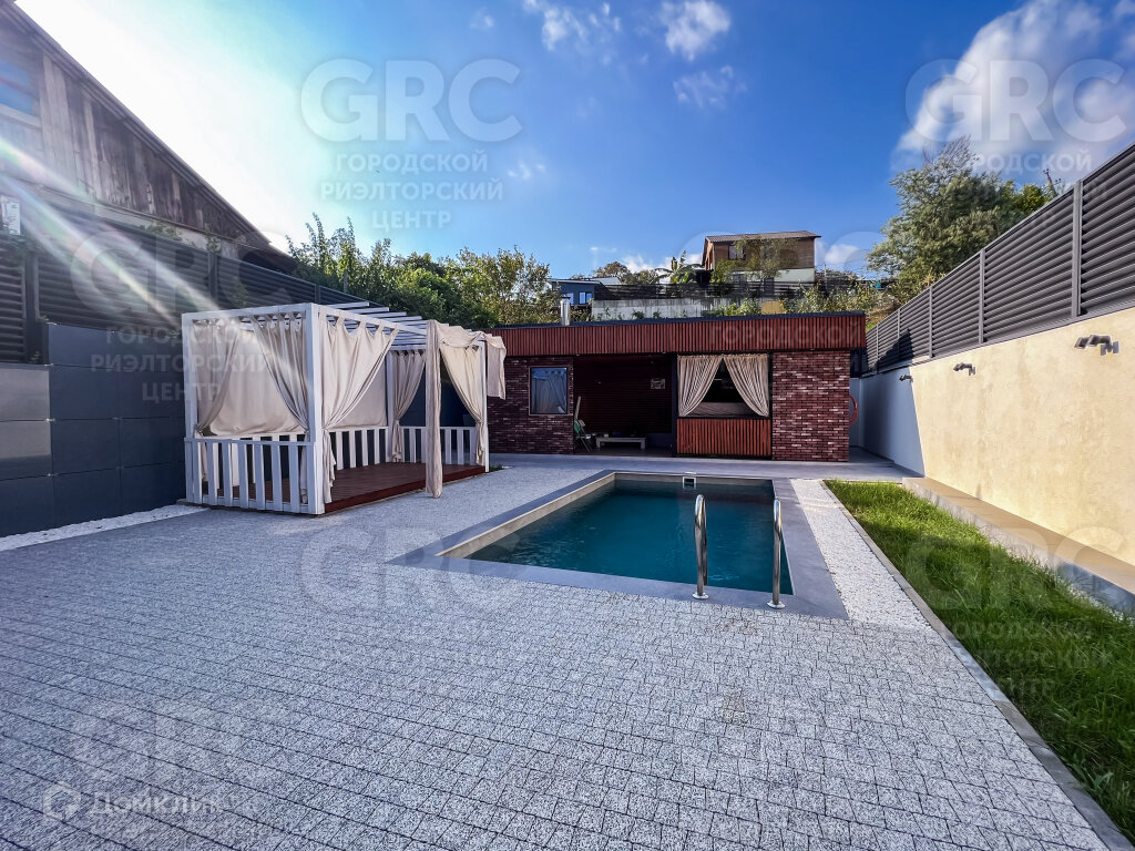 Придомовая территория этого дома идеально подходит для отдыха и развлечений. Здесь вы найдете бассейн, где можно освежиться в жаркий летний день, патио-зону для отдыха и барбекю, где можно провести время с семьей и друзьями. Также на территории есть отдельно стоящее здание с душевой и санузлом, что обеспечивает дополнительный комфорт для гостей.