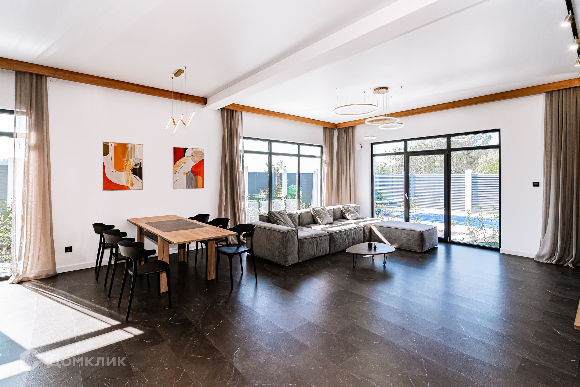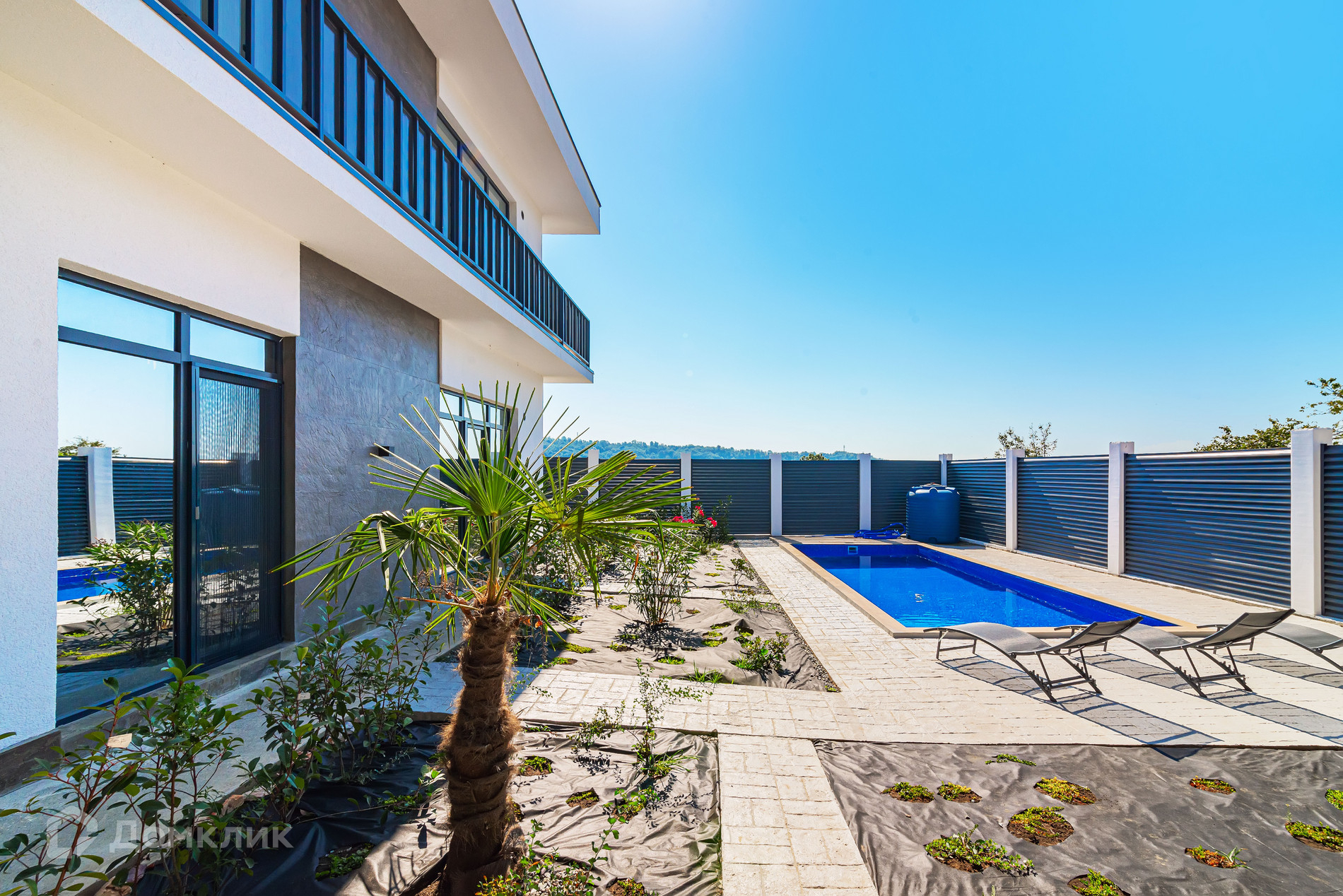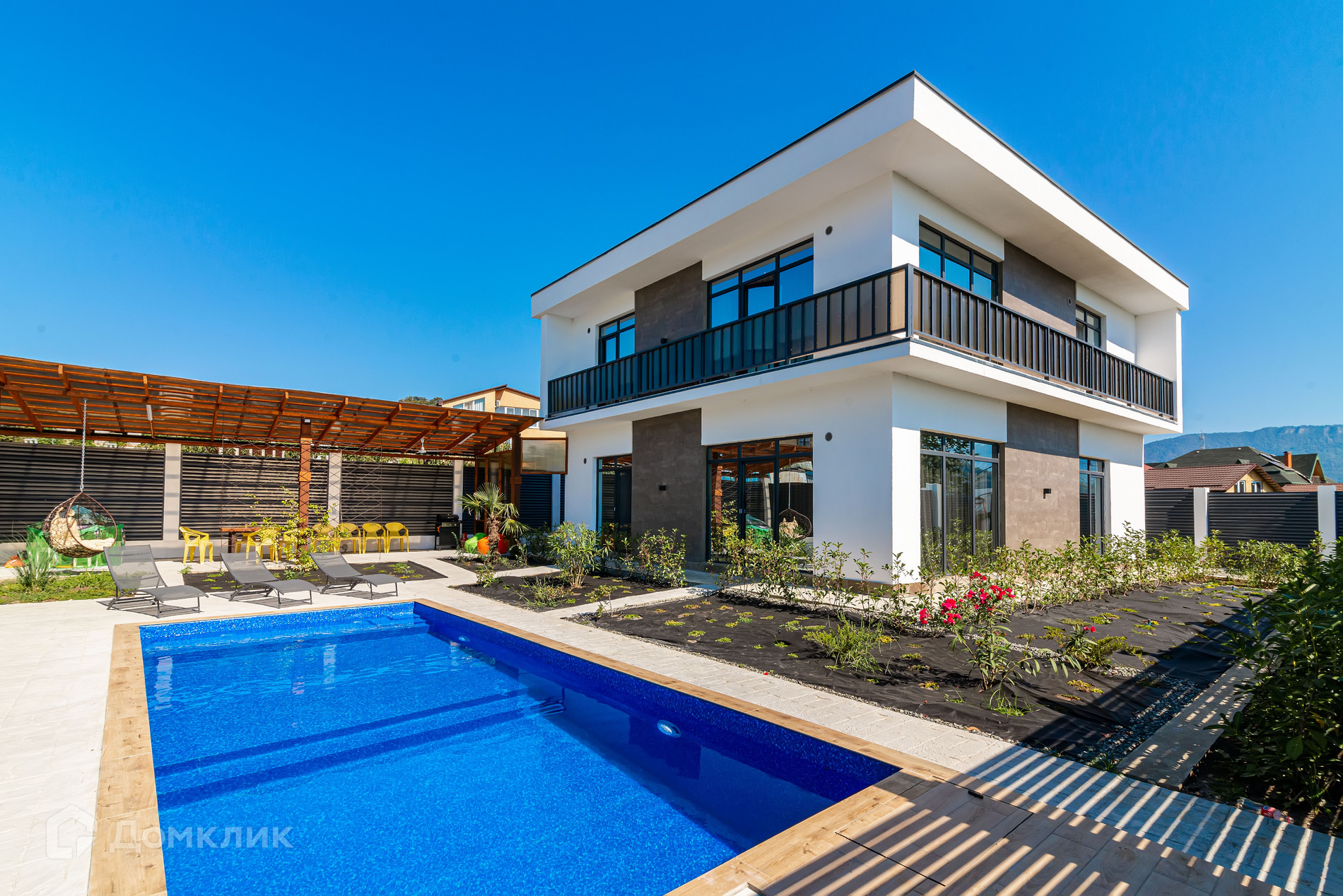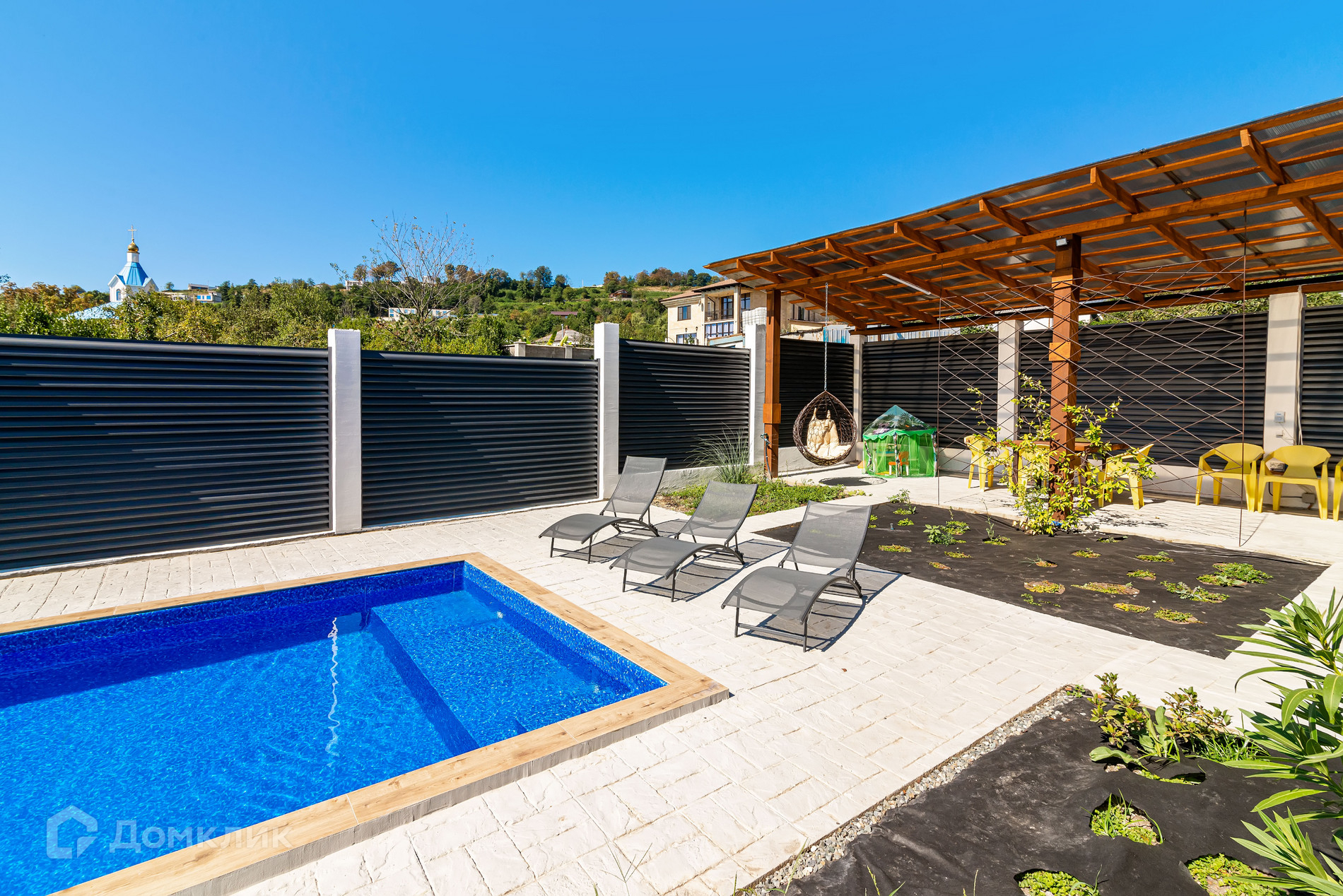 Дом 220 м2. Участок озеленен, есть бассейн.