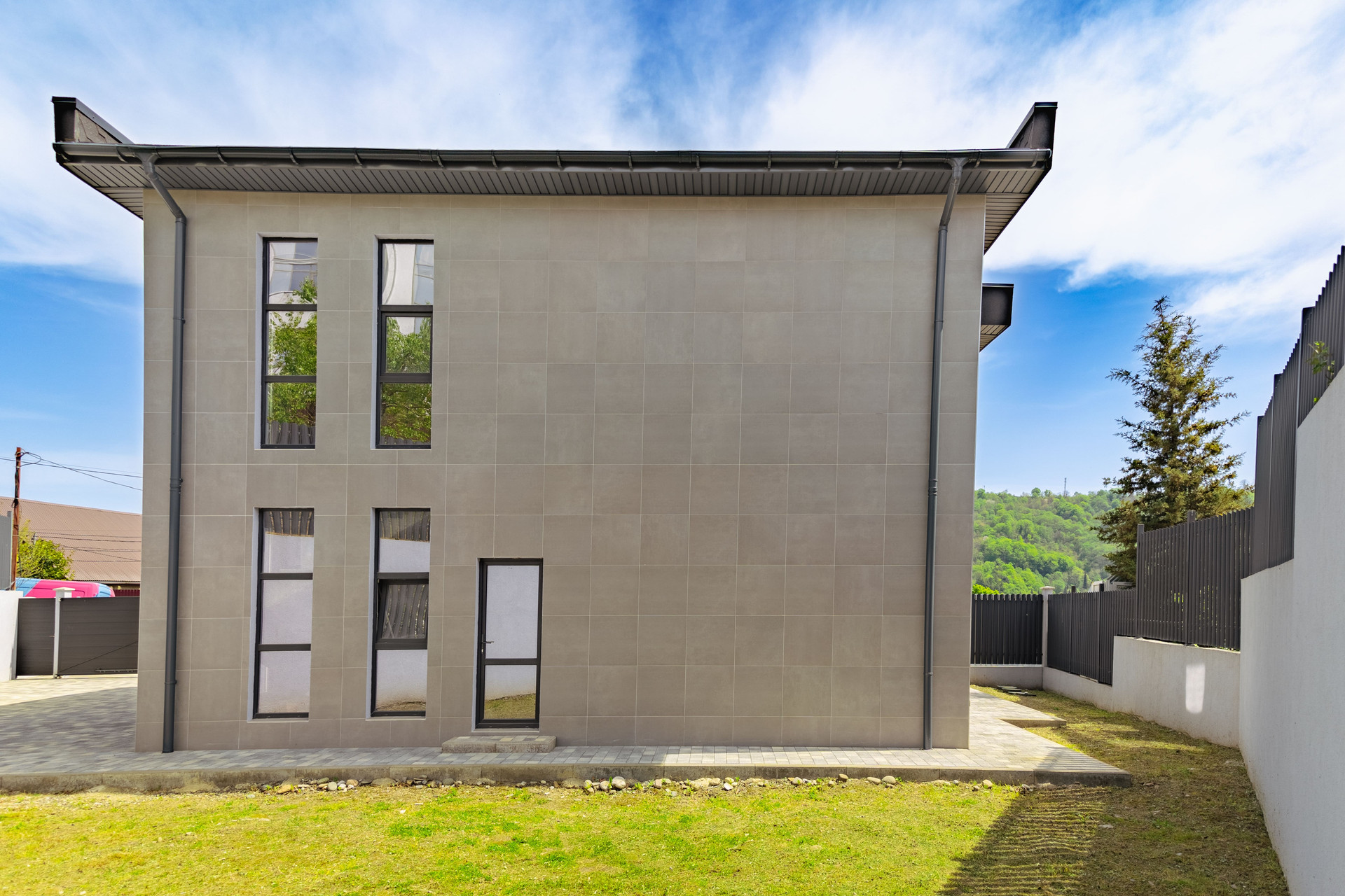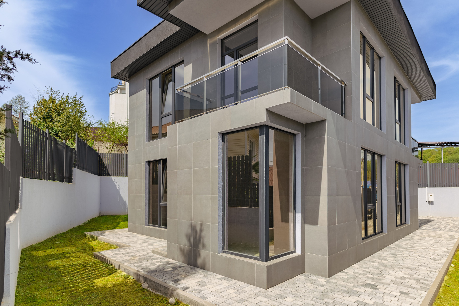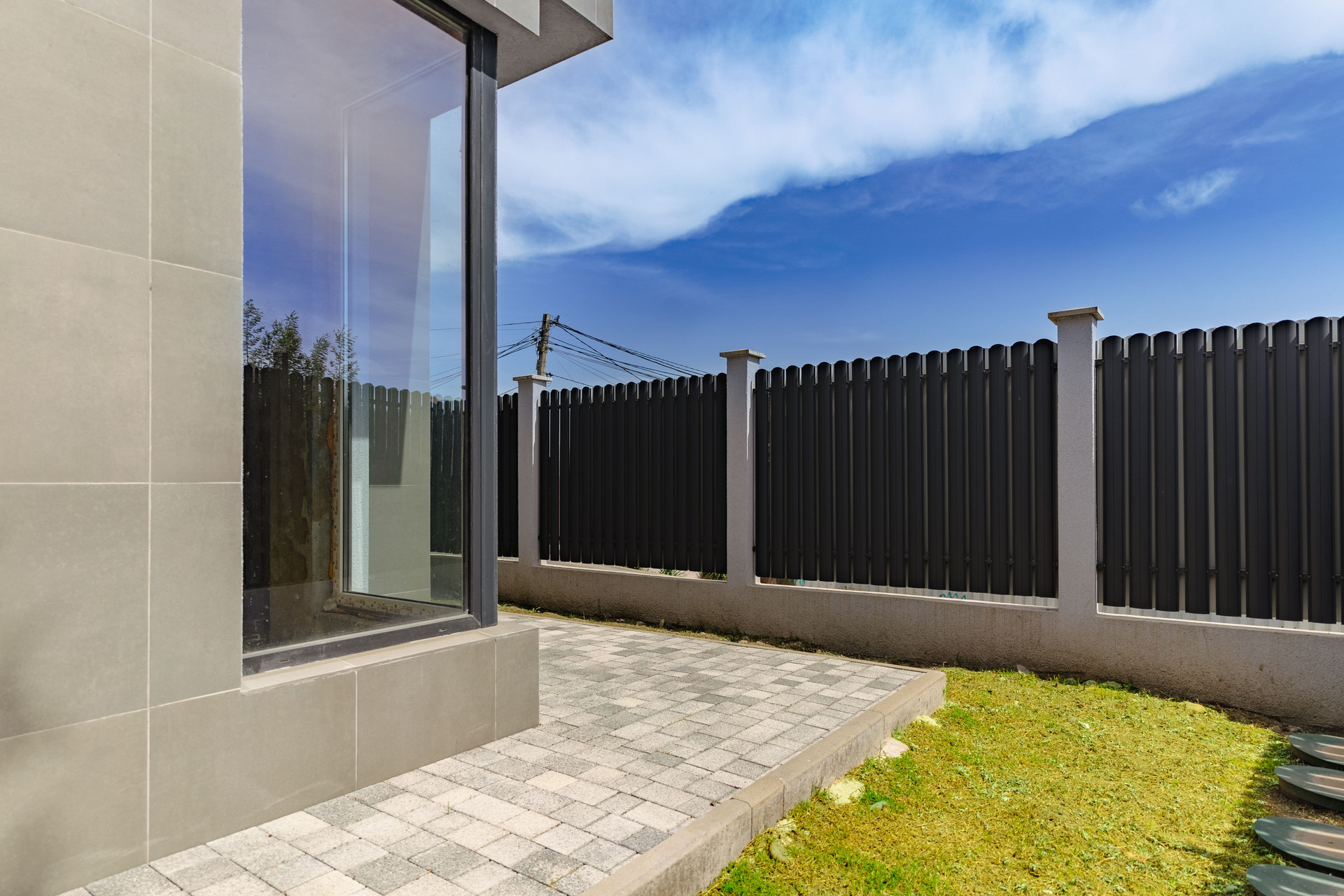 Границы участка выполнены из ограждающей декоративного материала, что придает красивый и уникальный вид Вашему коттеджу!