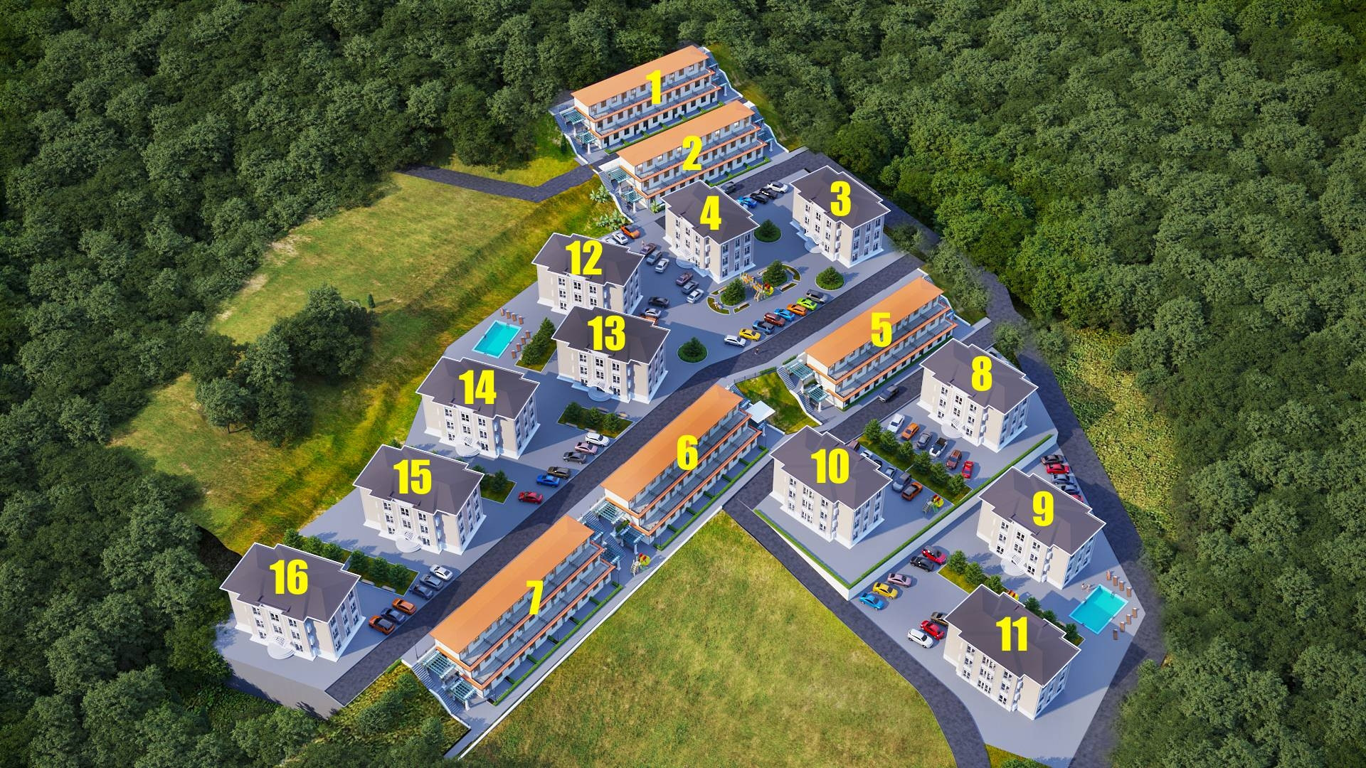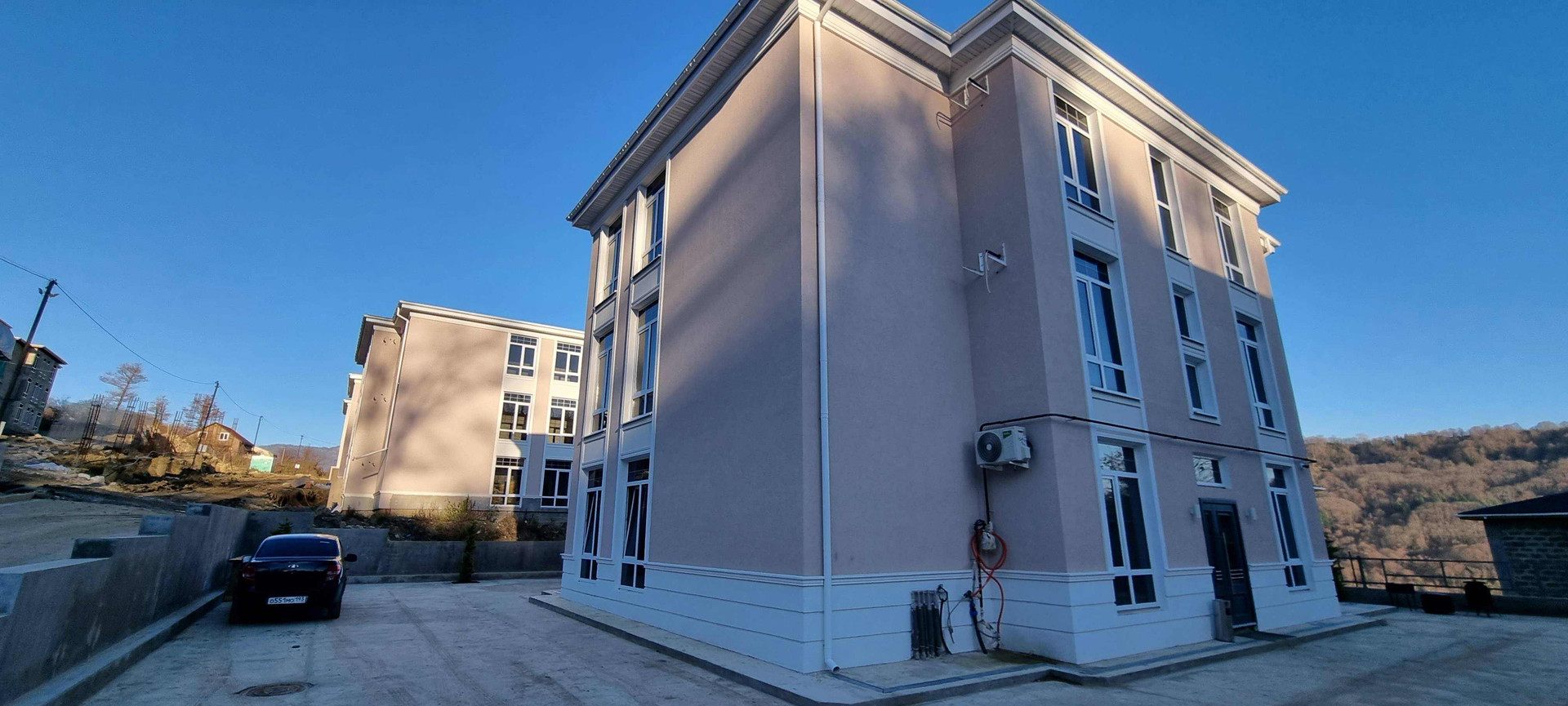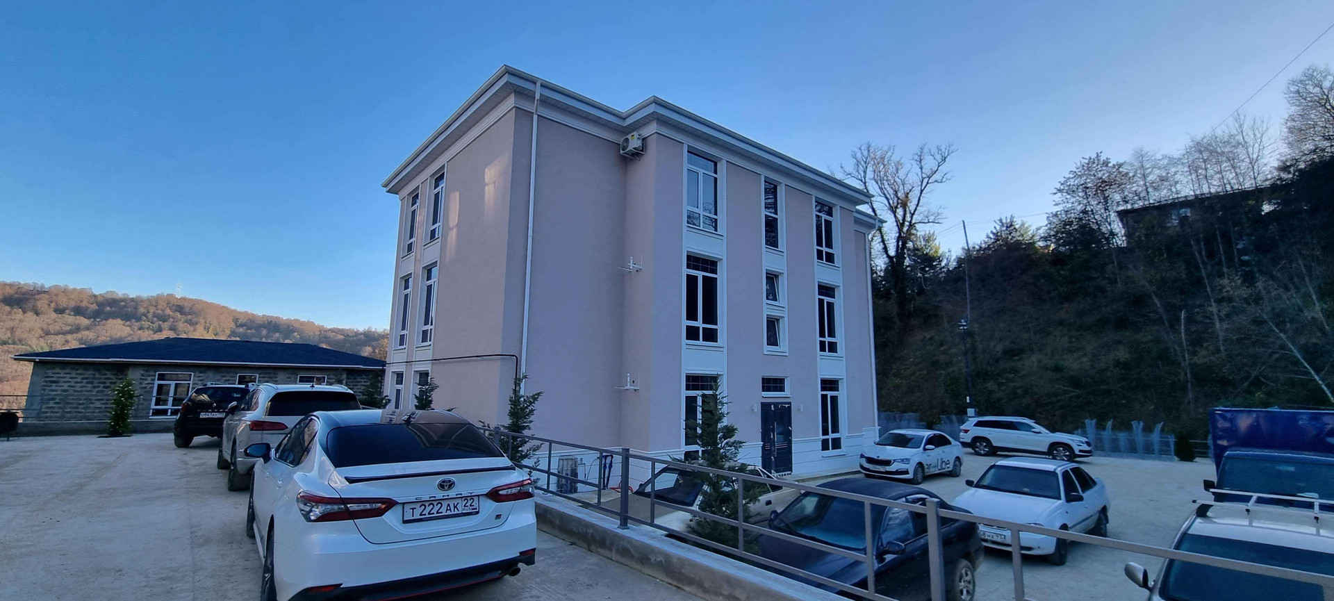Есть Бассей,  парковка, зоны отдыха, трансфер от УК в аэропорт, на море, Поляну, экскурсии и пр туристический сервис.