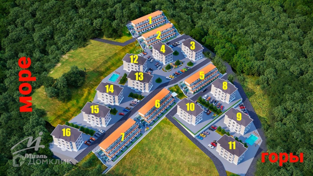 3) Апарт-комплекс "БЛАГОДАТЬ HILLS" расположен в живописном месте Адлерского р-на в долине р. Мзымта с. Высокое, Все дома комплекса (16 домов) с центральными коммуникациями (свет, вода, канализация, газ). Все коммуникации уже подведены. Закрытая благоустроенная территория, общей площадью 3 Га, будет включать т в себя шлагбаум, детскую площадку, бассейн, парковку (в настоящий момент производится благоустройство территории). Живописный панорамный вид на горы, благоприятная экологическая обстановка и удобное месторасположение: Море – 11 км., Центр Сочи – 35 км., Центр Адлера – 12 км., Аэропорт – 7 км., Олимпийский парк – 7 км., Красная Поляна - 34 км. От жилого комплекса планируется трансфер до моря. Магазины, аптеки, салоны красоты, продуктовые рынки находятся в непосредственной близости к жилому комплексу.