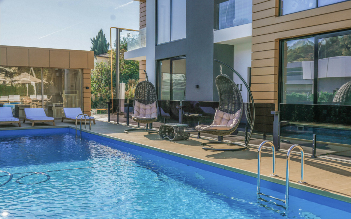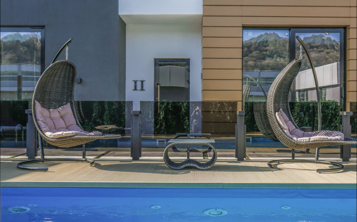 Закрытая территория с бассейном, баней и зоной отдыха. Парковка придомовая.