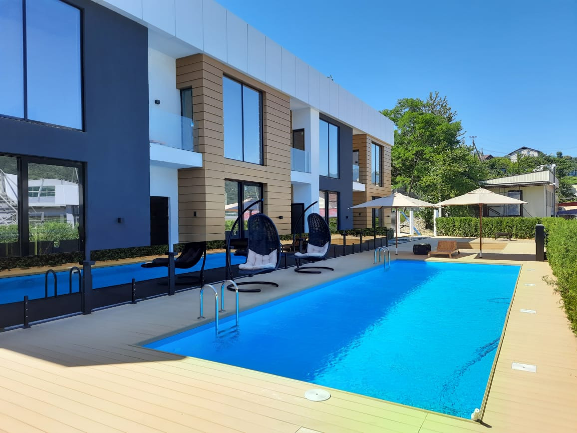 Комплекс состоящий из двух очередей по 4 и 9 таунхаусов соответственно. Бизнес класс. Стиль современный хай-тек. Закрытая территория под видео наблюдением. Располагается между горным кластером Красная Поляна и прибрежной зоной Олимпийского парка на улице Ивановская. Вблизи национального парка и русла реки Мзымта. Одно из преимуществ комплекса, это ровная территория, быстрый удобный подьезд с федеральной дороги и удобная транспортная развязка, обеспечивающая доступность к туристическим объектам города и ко всем объектам инфраструктуры. На территории располагается бассейн, баня и зоны отдыха. Парковка придомовая на территории комплекса.