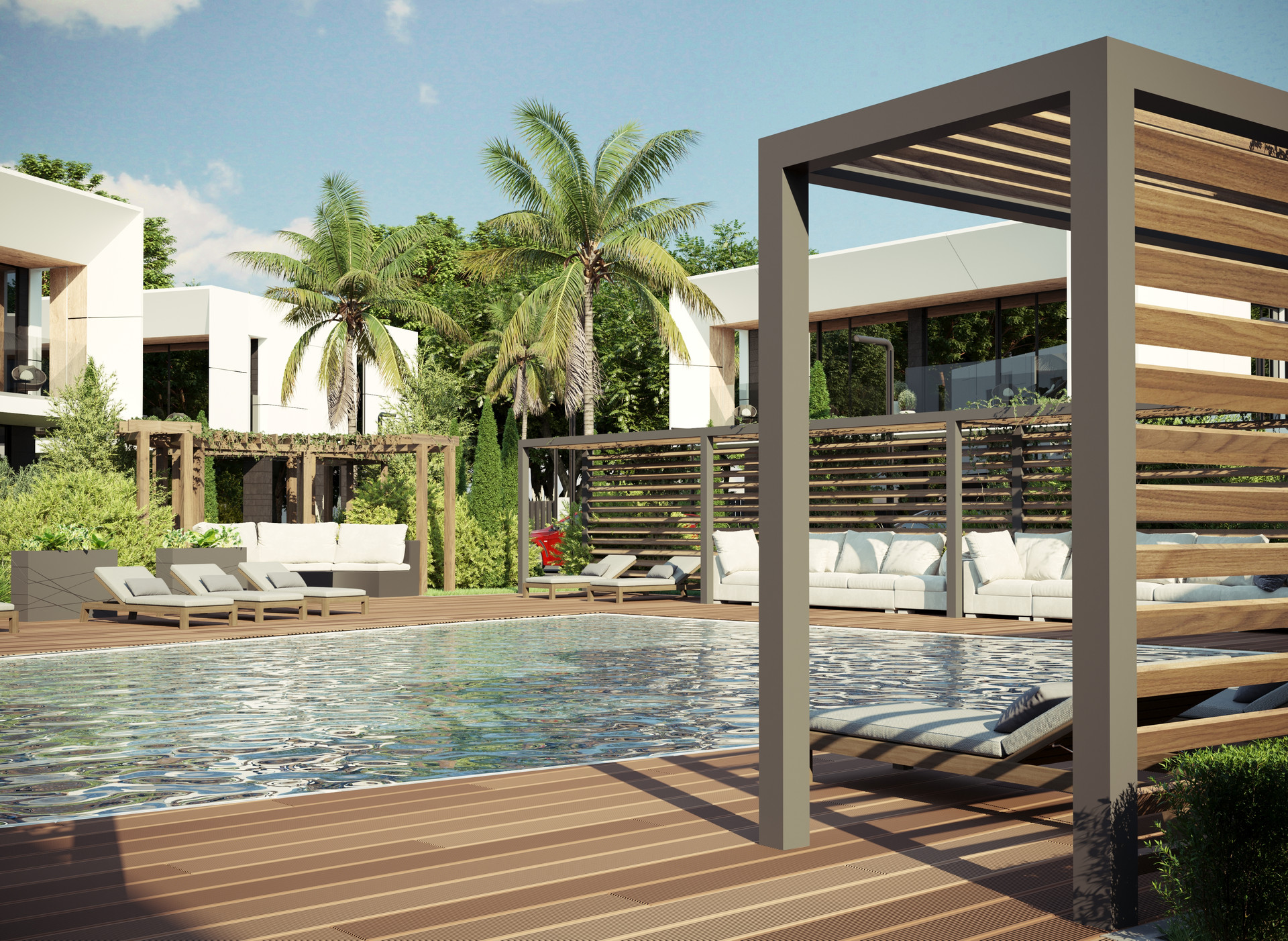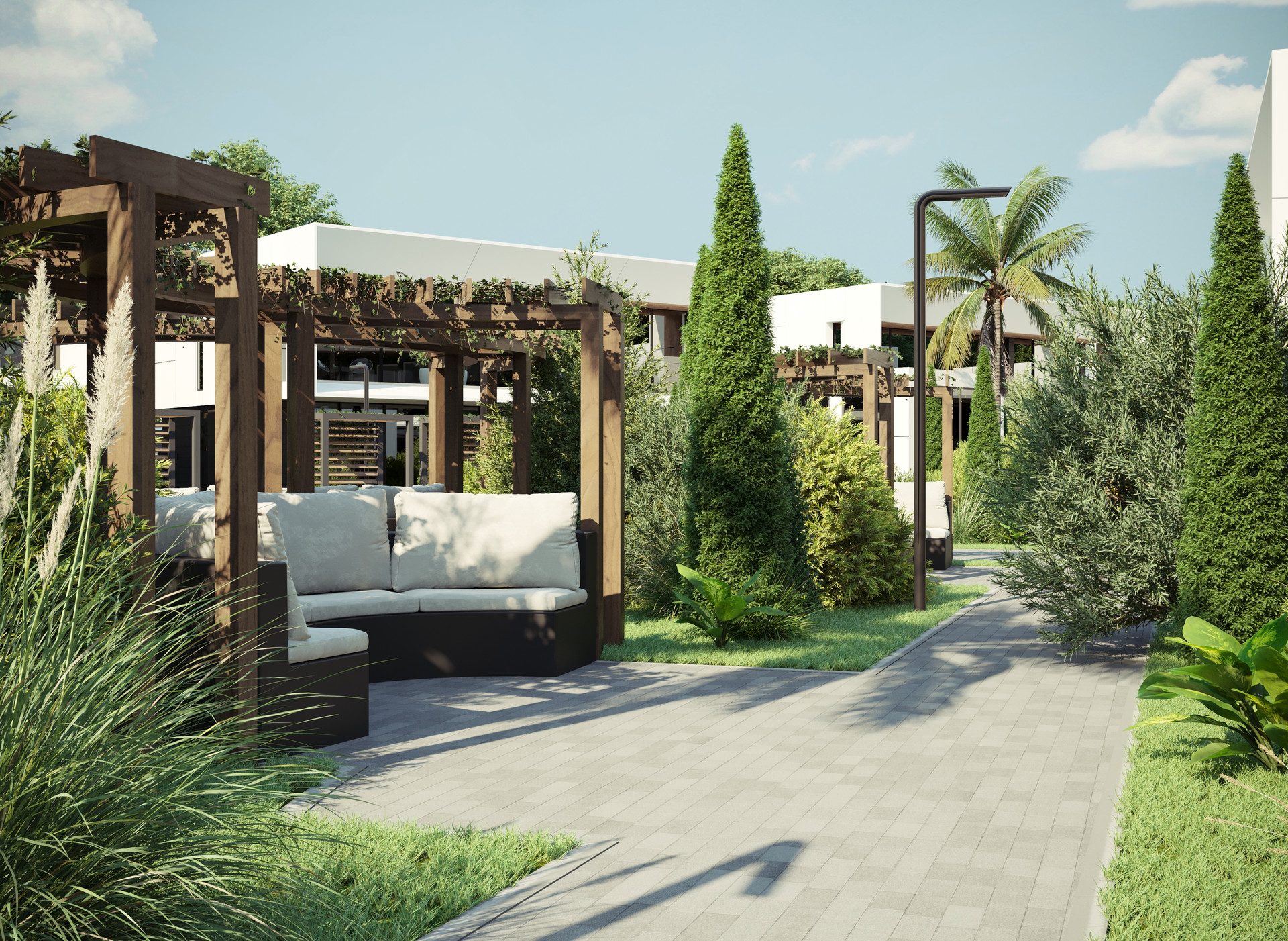 Комплекс располагается на 1га земли и включает в себя 19 вилл. Абсолютно ровный участок.