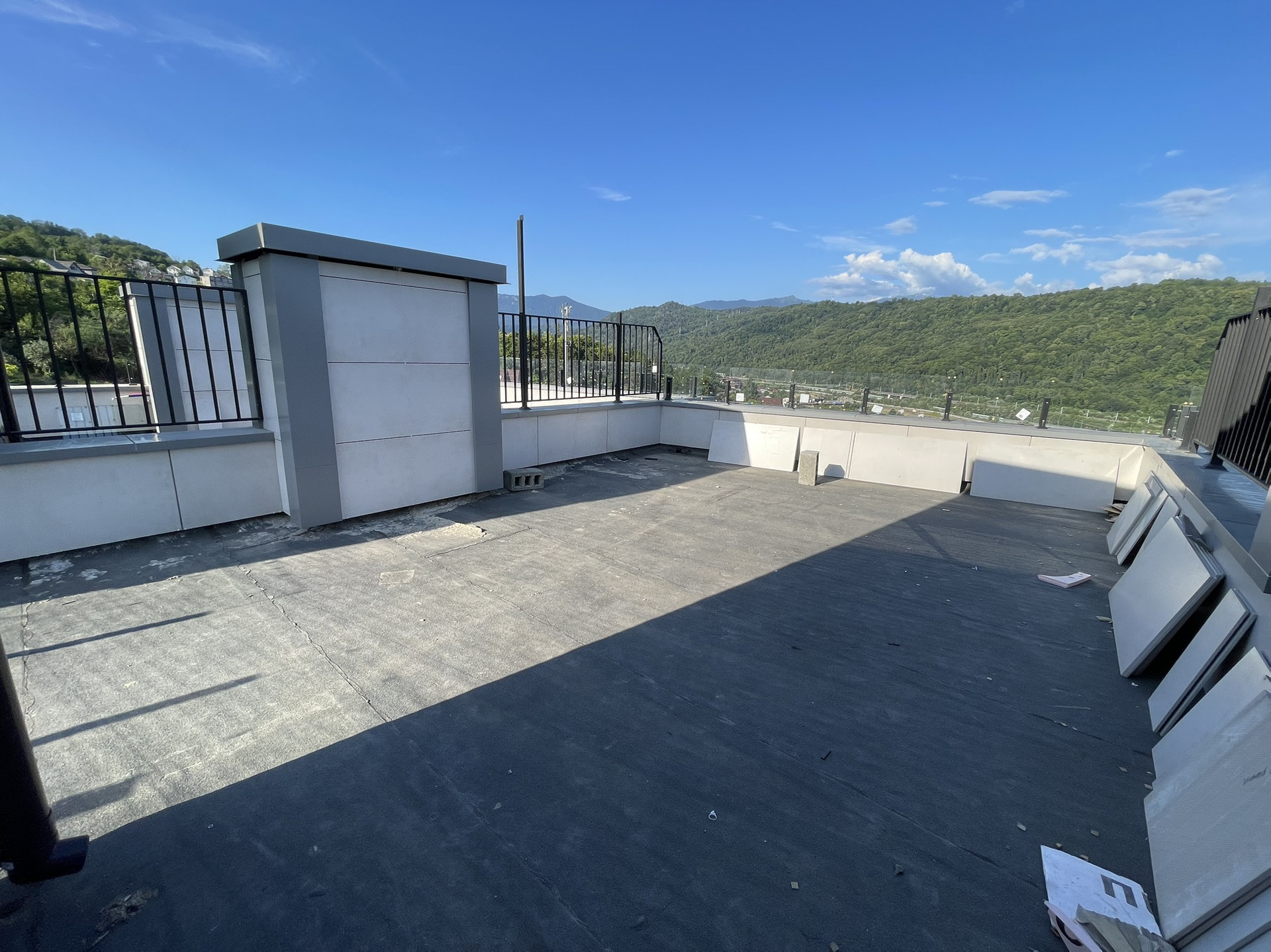 Площадь танхауса 100 м2 + 50 м2 эксплуатируемая кровля + 40 м2 терраса.