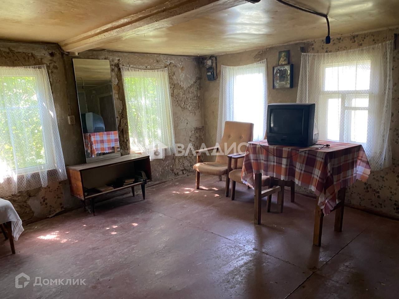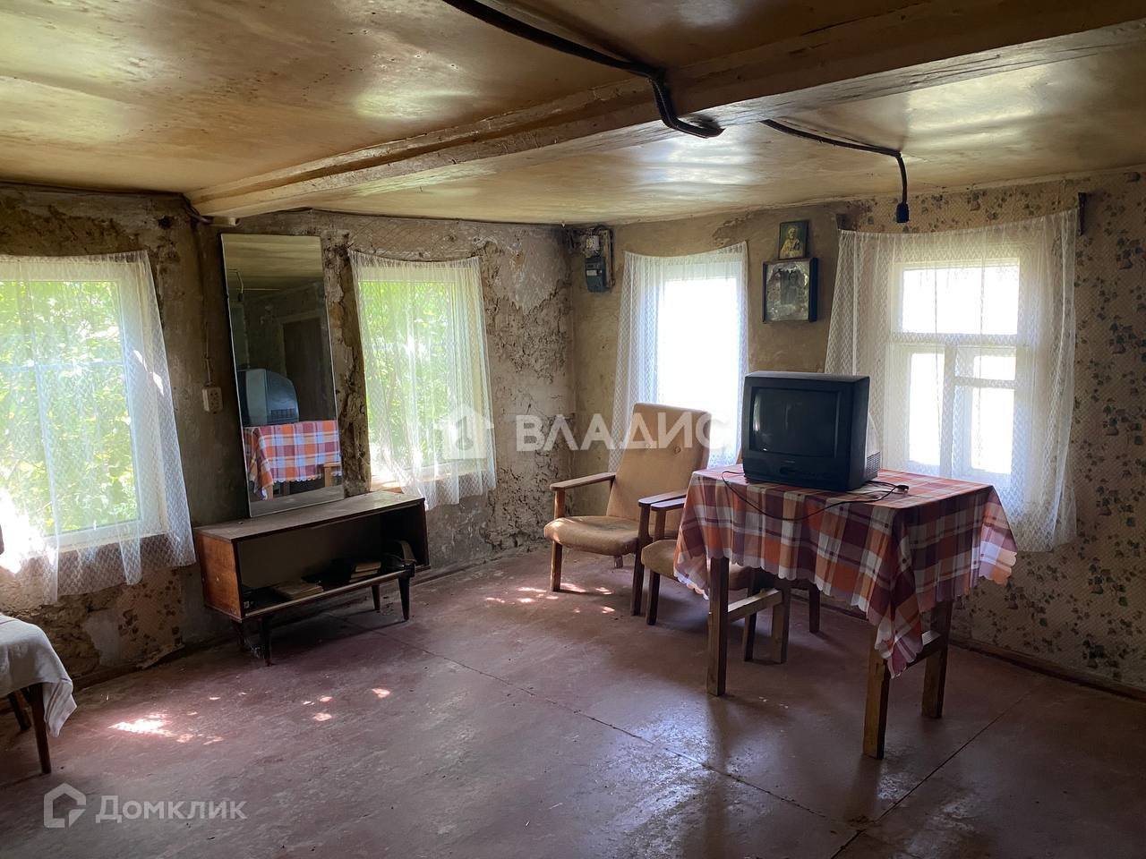 Внутреннее состояние дома: общая площадь 32 м 2. В доме 1 комната площадью 19,4м 2, кухня-гостиная 12,6м 2, коридор.  Все требует ремонта .Дому нужен хозяин, который создаст из него райский уголок.