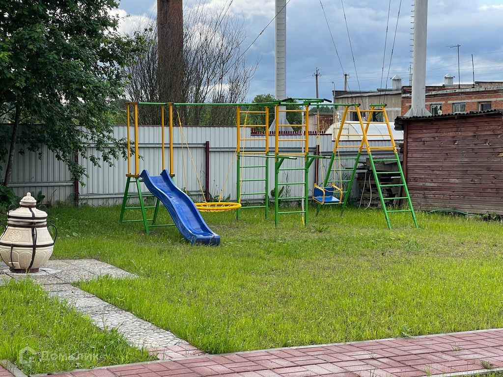 Участок ровный, газонная трава, детская площадка, вымощены дорожки и зона парковки, тандыр.