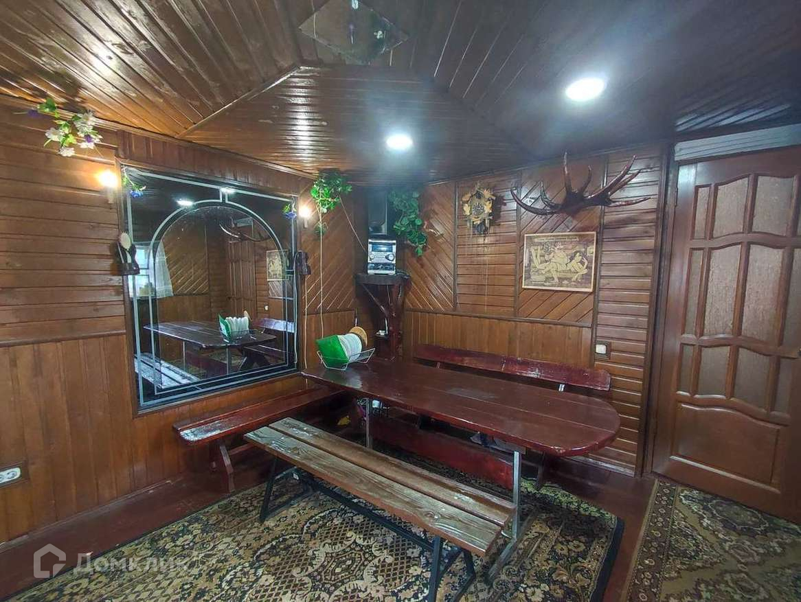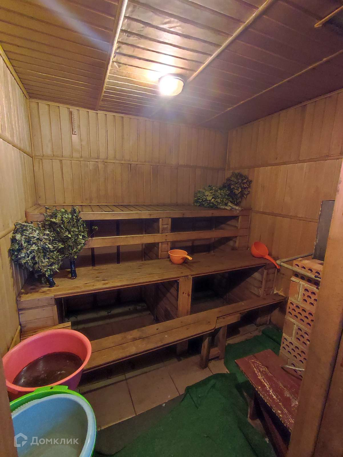 Баня отделана деревом, очень уютно. Внутри есть душевая, парилка, зона отдыха; дровник отдельно.