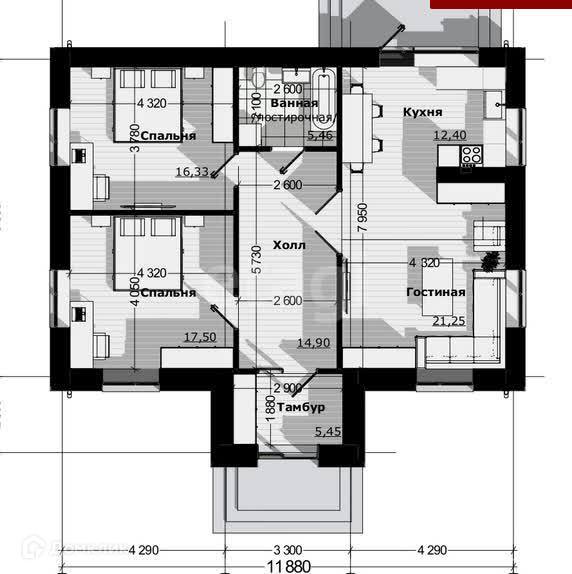 Общая площадь 93.29 м2