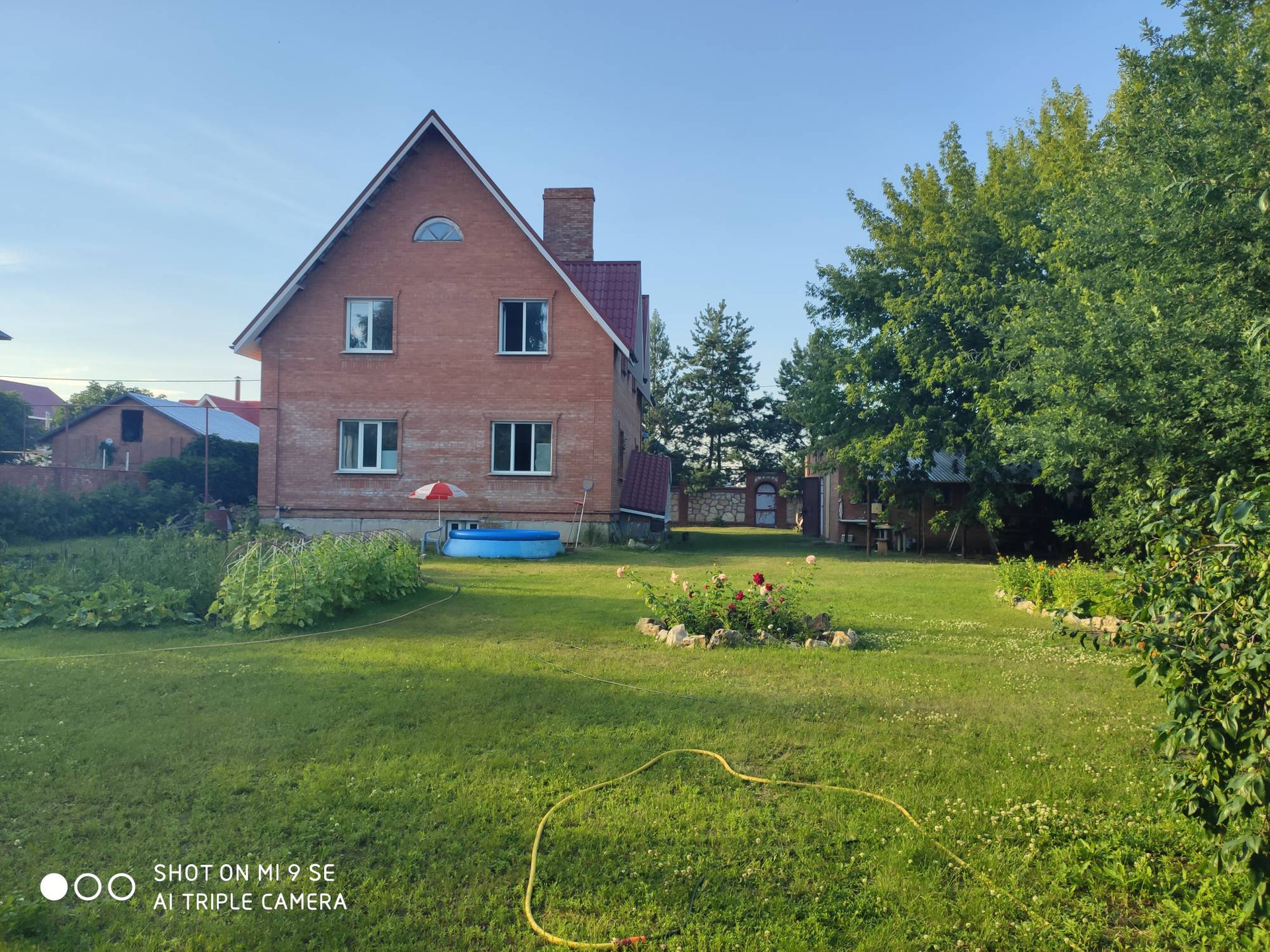 Участок 15 сот. с кирпичным забором по периметру, зеленые насаждения. Гараж на 2 машины + хоз.блок.