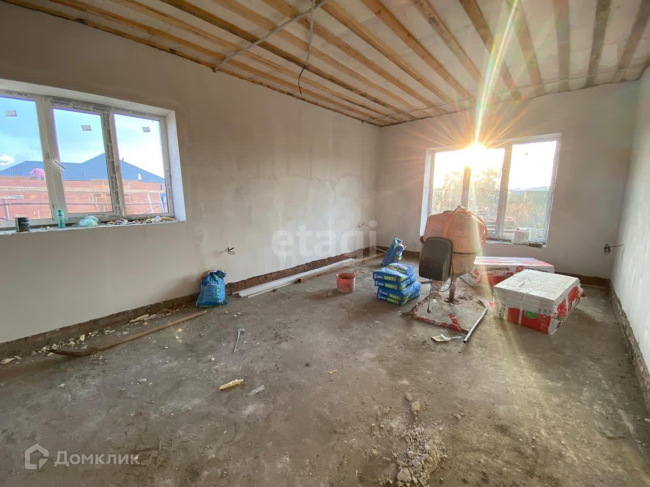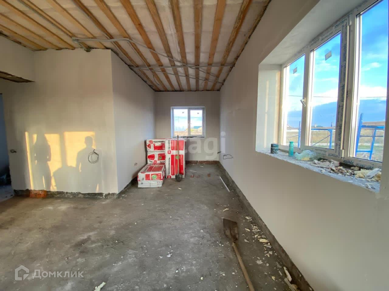 Три просторные жилые комнаты и большая кухня-гостиная, вместительная гардеробная комната/кладовка, 2 с/у. Дом очень тёплый, толщина стен 40 см, утеплитель минвата Knauf Insulation, внешняя отделка-декоративная штукатурка, 4-х скатная крыша. Дом пока на этапе внутренней предчистовой отделки. Массив активно застраивается. В шаговой доступности остановка, магазины Пятерочка,  Фабрика Качества, детский сад.