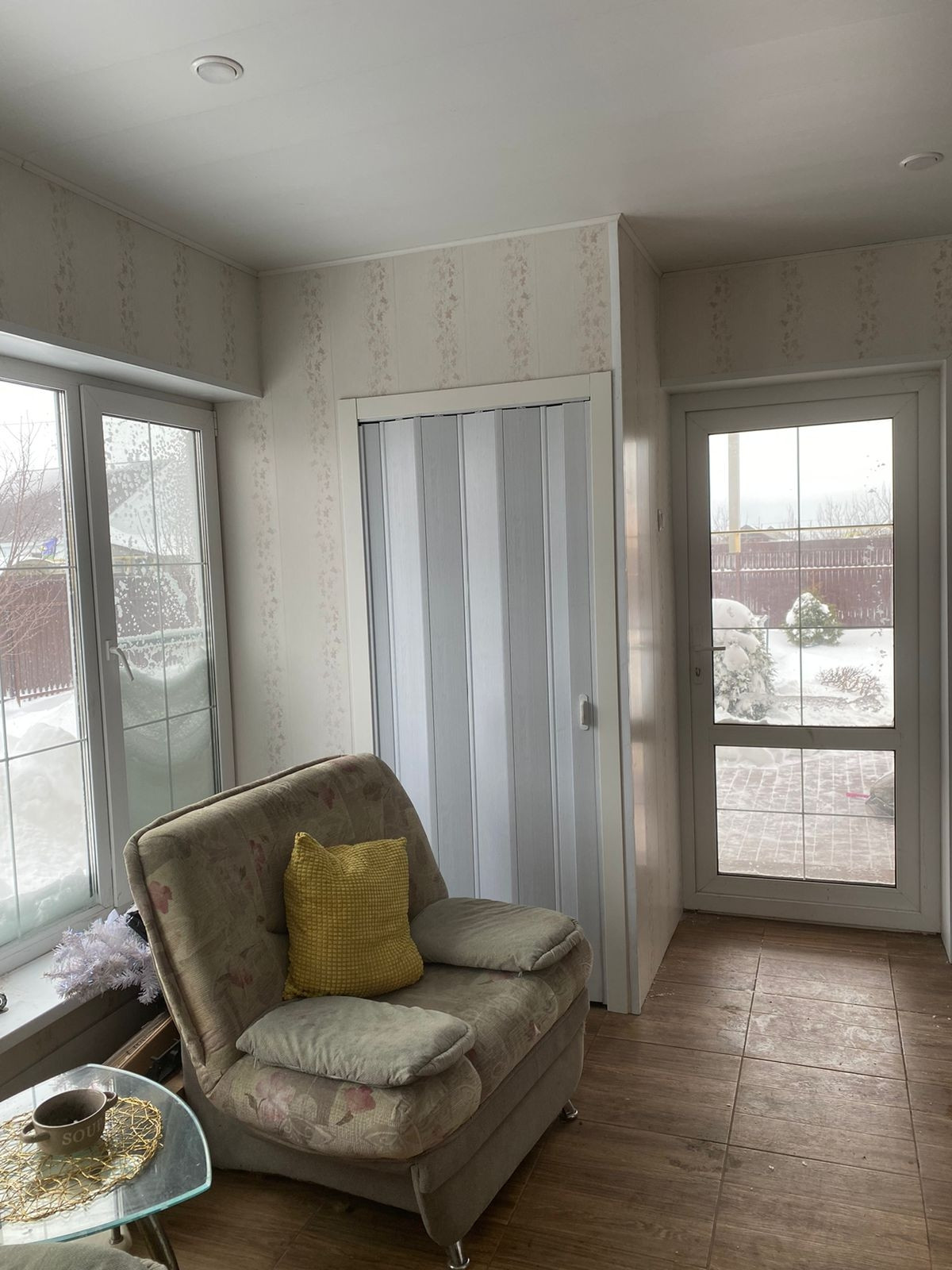 Таунхаус на 4 х хозяев. К дому пристроена веранда с панорамным окнами и навесом, кухня гостиная 20 м2, 2 спальные комнаты по 11 м2. В доме тёплые полы, кондиционер, кухонный гарнитур. На участке новая Баня, хоз. блок, подиум для установки бассейна.