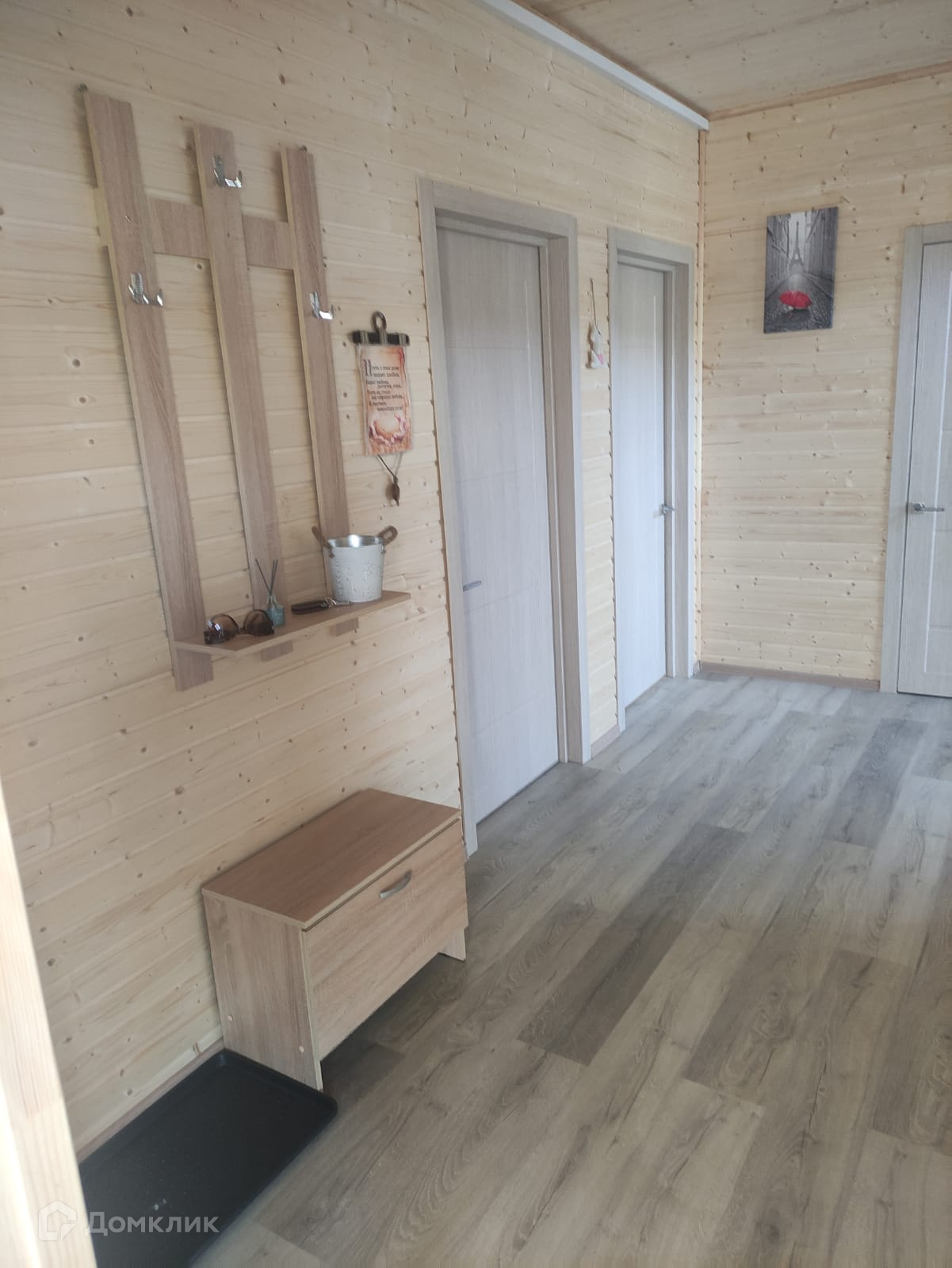 Дом: двухэтажный, общей площадью 100 кв.м., каркасный, обшит имитацией бруса, внутренняя отделка евровагонкой, полы покрыты ламинатом. металлическая с терморазрывом входная дверь, окна — ПВХ , кровля — металлочерепица. Установлена вся сантехника, и мебель.