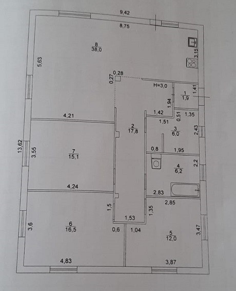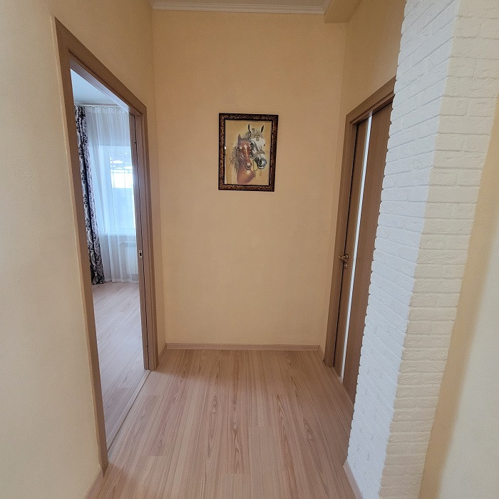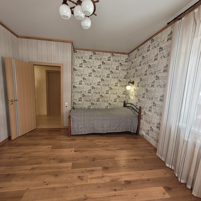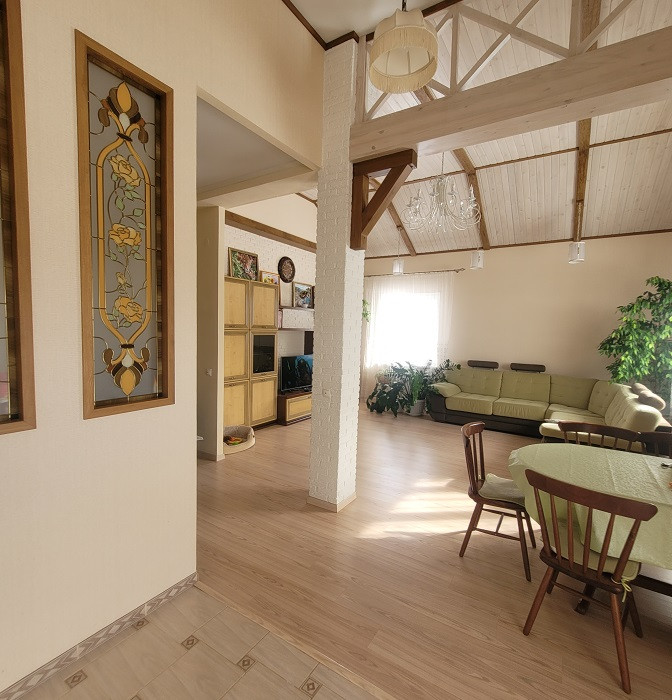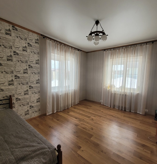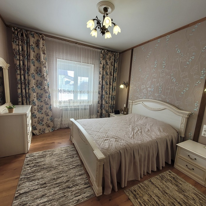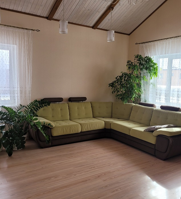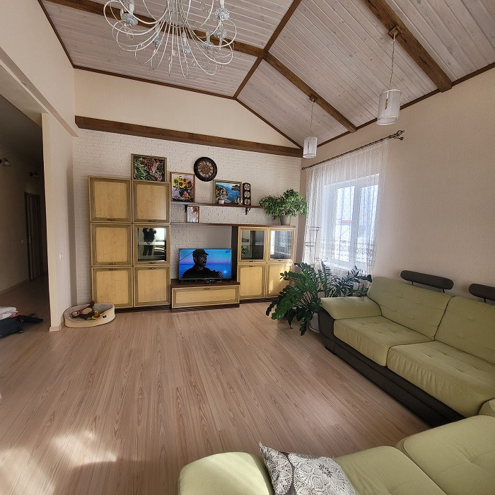 В уютном тихом месте недалеко от города продается одноэтажный дом, общей площадью 114 кв. м. Три спальни (12, 16,5 и 15,1 кв.м) и просторная кухня-гостиная 38 кв.м. В доме имеется хозяйственный блок, два санузла. Теплые полы на кухне, в ванной и детской комнате. В доме остается кухонный гарнитур с техникой, угловой диван, шкаф-купе в прихожей. Отличный дизайнерский ремонт, не требующий дополнительных вложений.