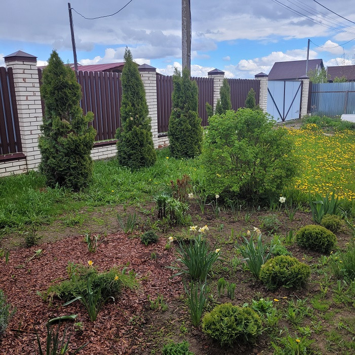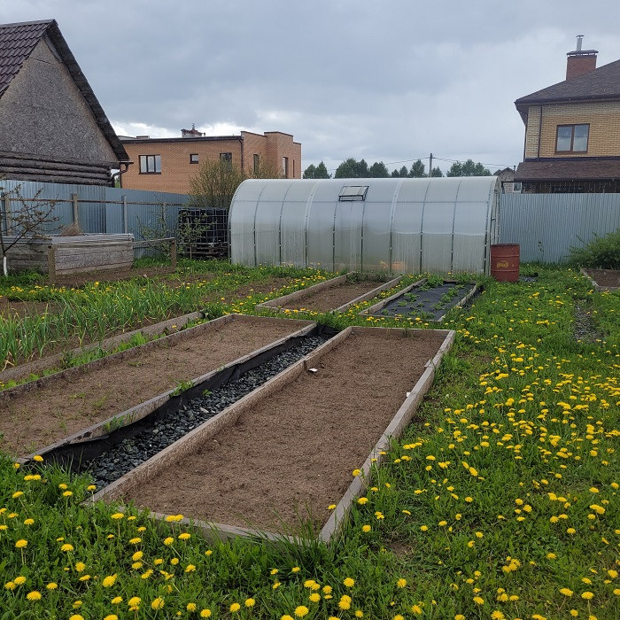 На участке имеются плодоносящие деревья и кустарники (яблони, вишни, смородина, крыжовник... всегда собирают хороший урожай!). Есть теплица 6x3, емкость под воду для полива на 1000 литров.