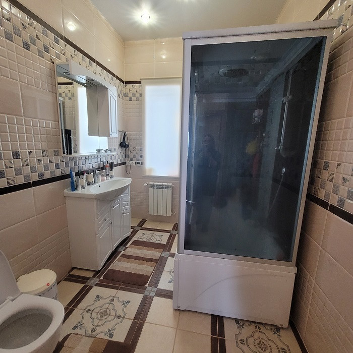 Дом очень теплый, материал стен-несъемная опалубка. Скважина 60 м, канализация на 9 кубов. Имеется недостроенная баня-гостевой дом общей площадью 58 кв. м. со всеми коммуникациями и с уютной террасой. Есть отопление, необходима внутренняя отделка.