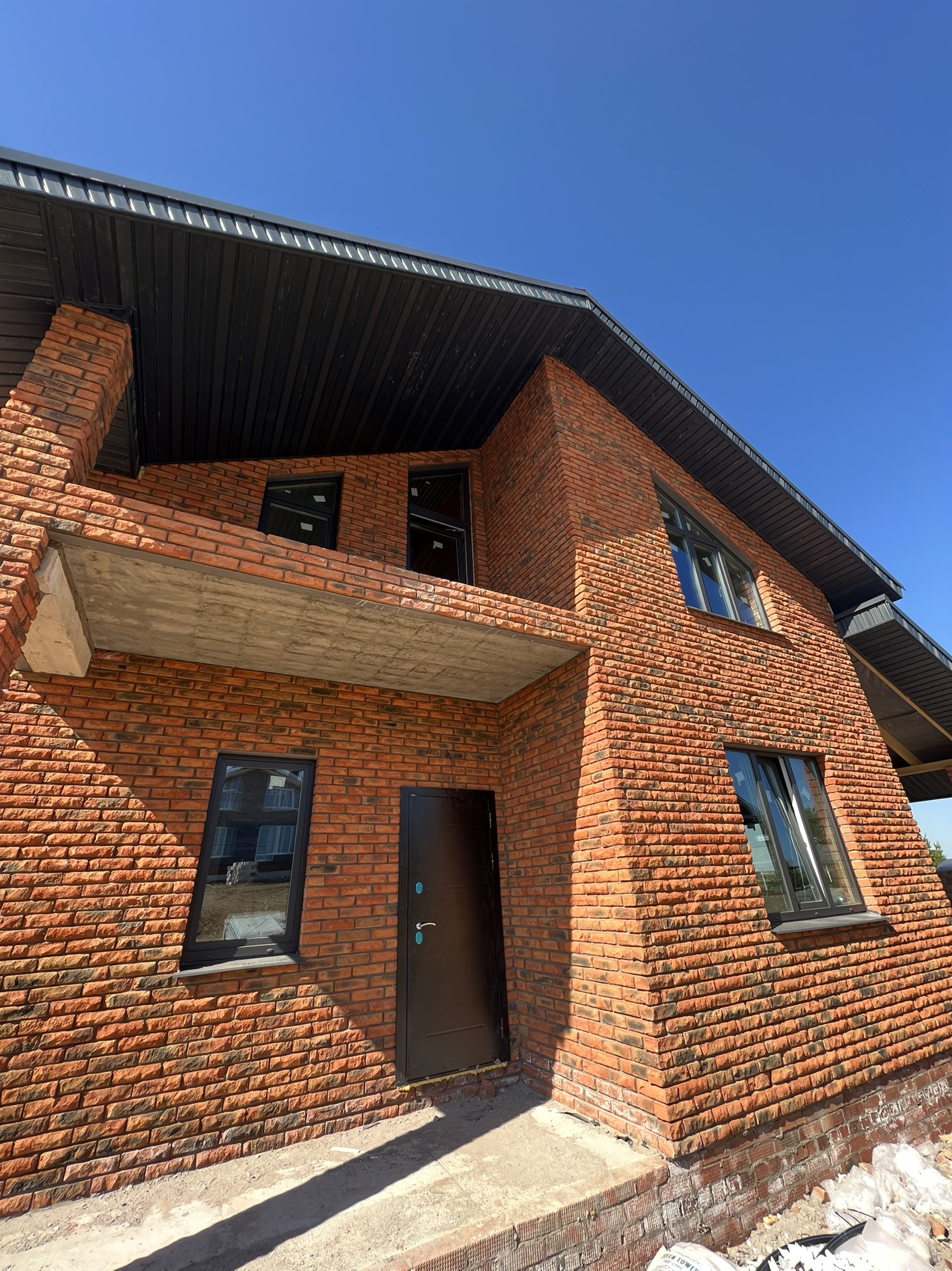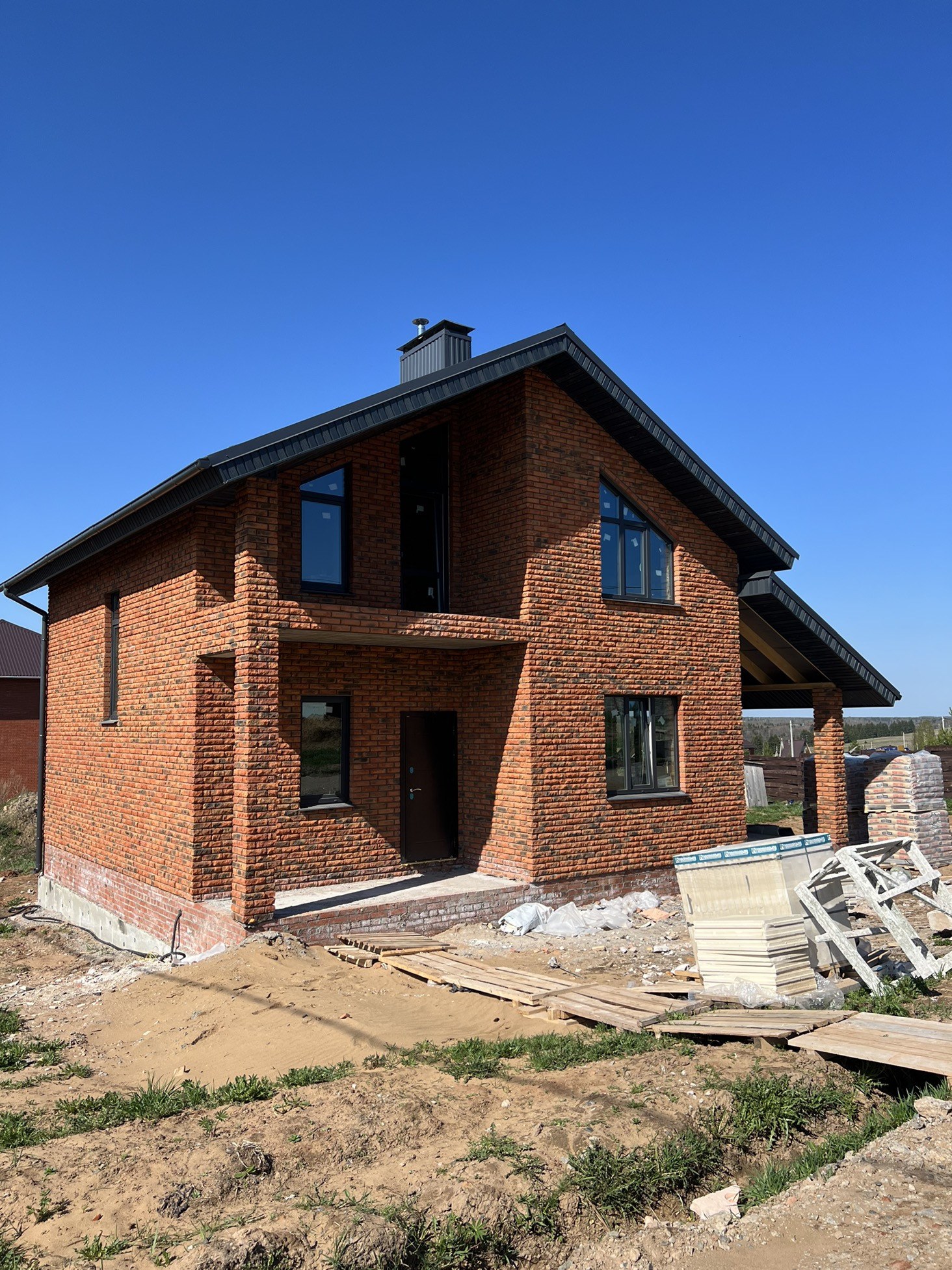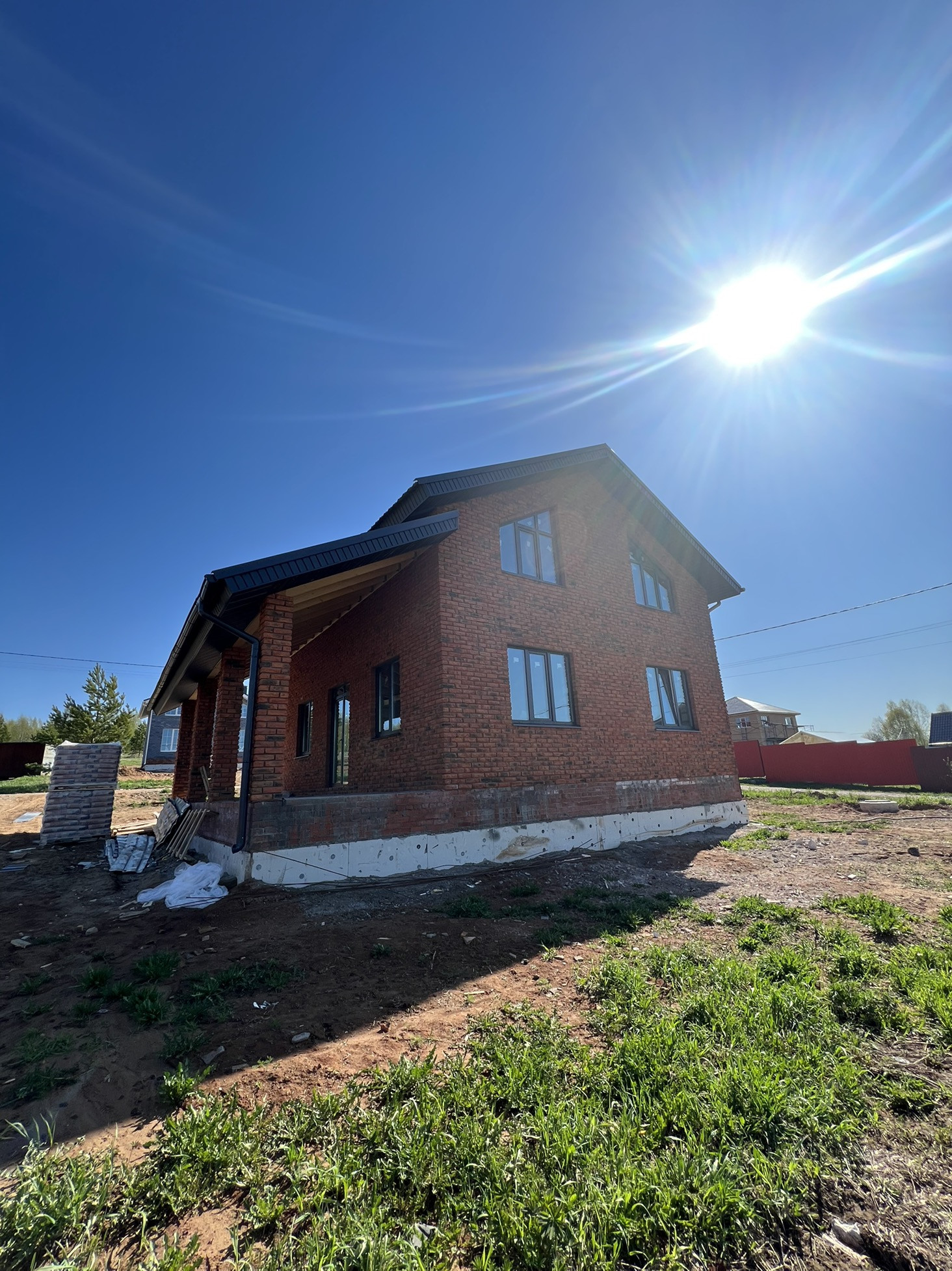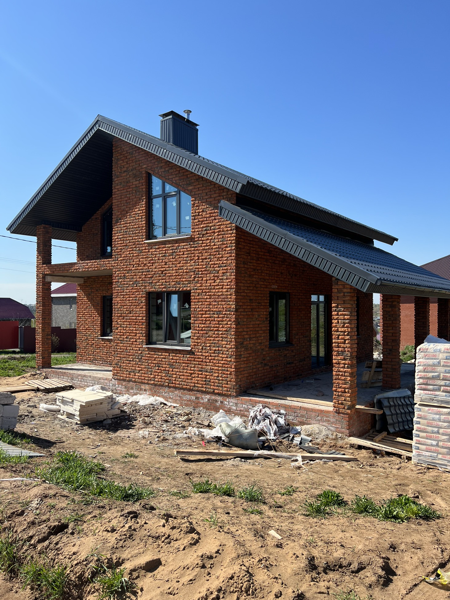 - стены возведены из заводского газобетона (ЗЯБ) и облицованы керамическим кирпичом
