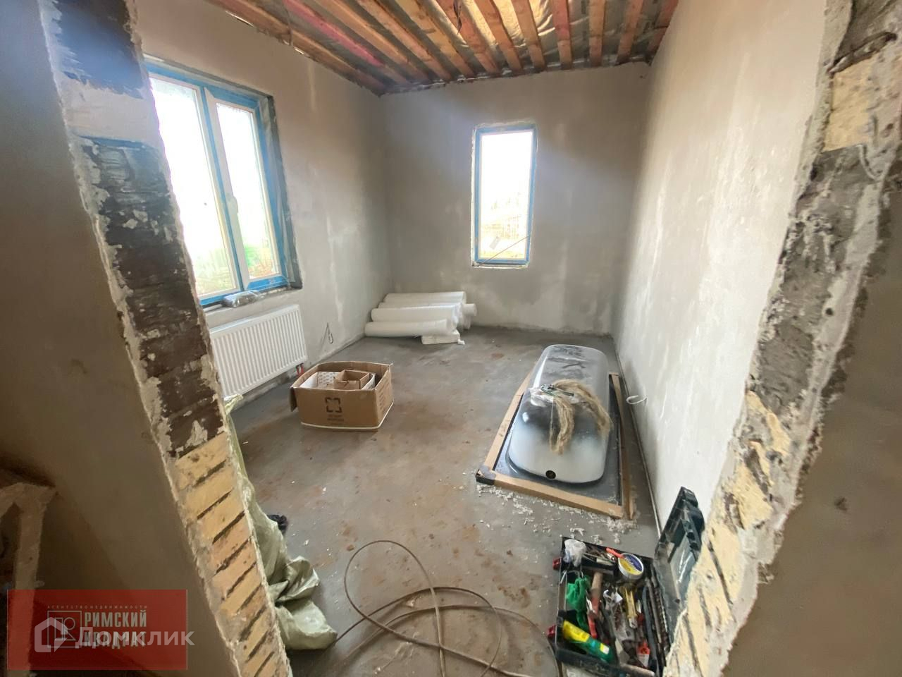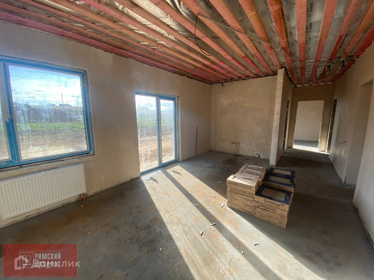 В доме установлены теплые полы и радиаторы отопления, полусухая стяжка пола, разведена вся электрика, оштукатурены и выровнены стены .