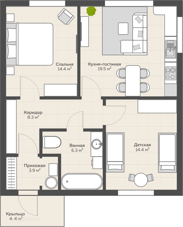 Платеж по ипотеке от 14 065 рублей в месяц (при ставке 3%, сроке ипотеки 25 лет, первоначальном взносе 10%).