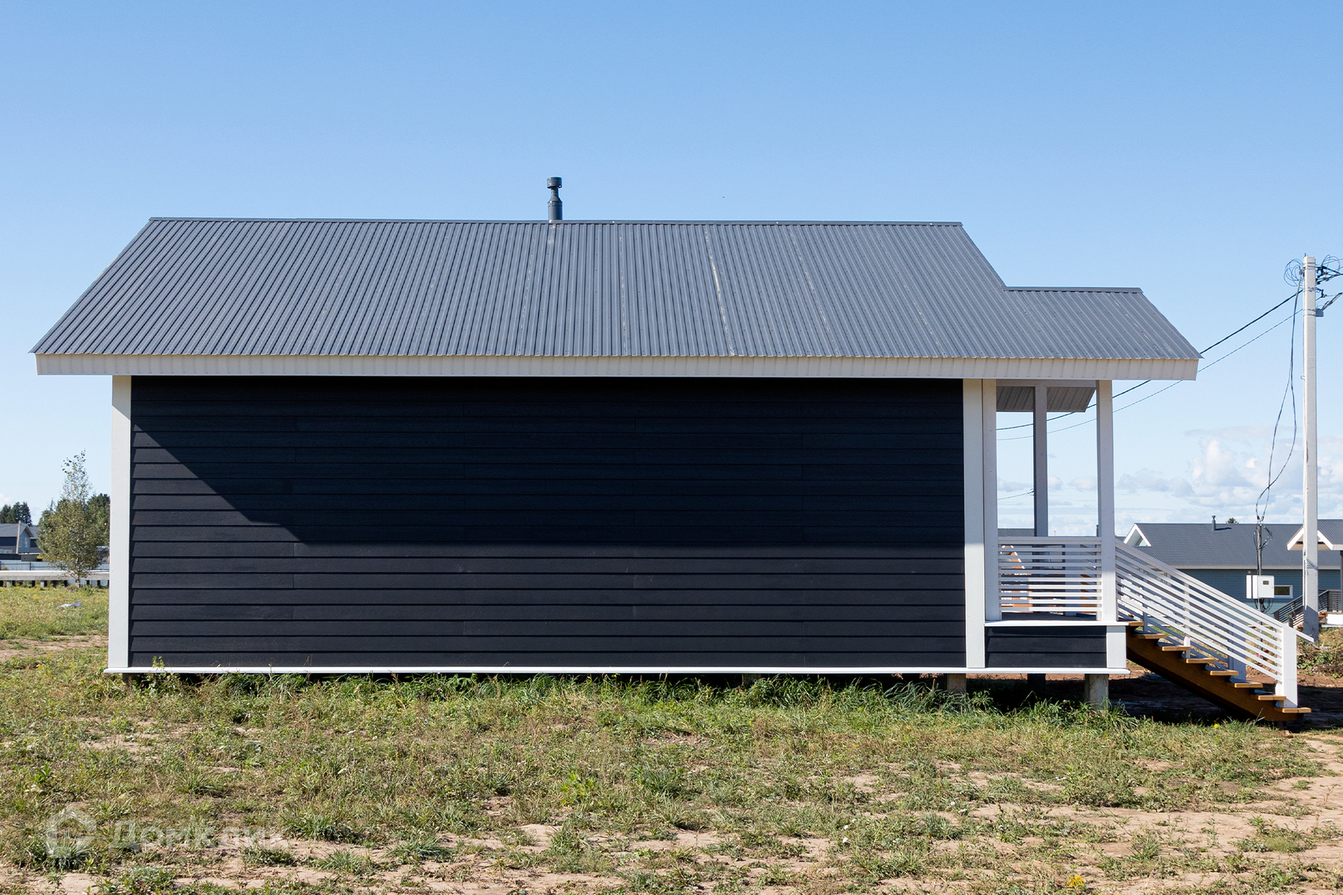 Внешняя отделка дома выполнена из фиброцементных панелей.