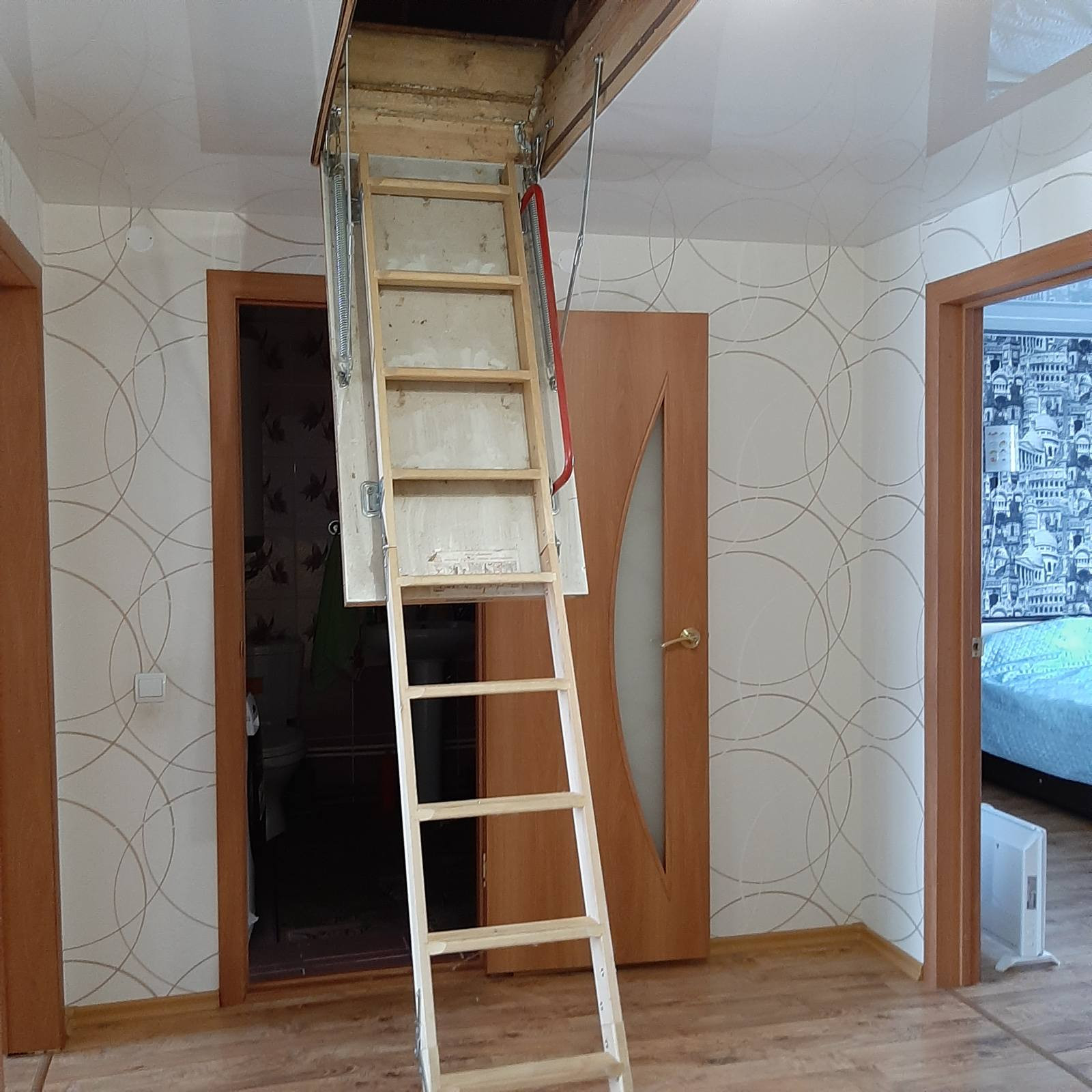 На втором этаже 4 спальни, большой коридор, большой санузел, есть лестница на чердак.
