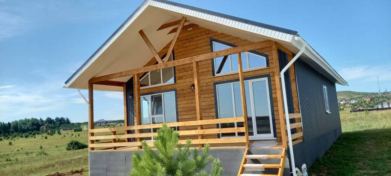 Комфортный дом из газоблока в блокхаусе, Современный стиль, дом  со вторым светом.