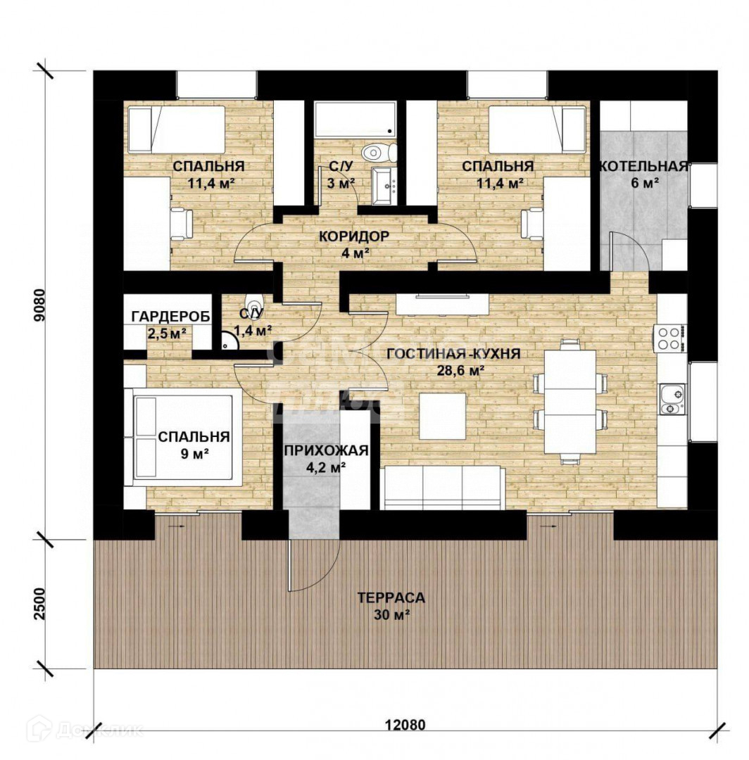 Общая площадь 95 м2