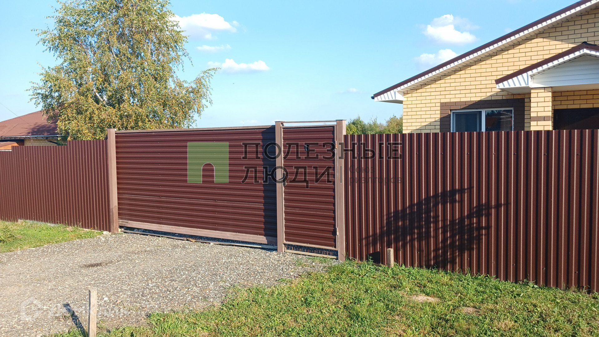 Участок с домом огорожены забором, ворота откатные.