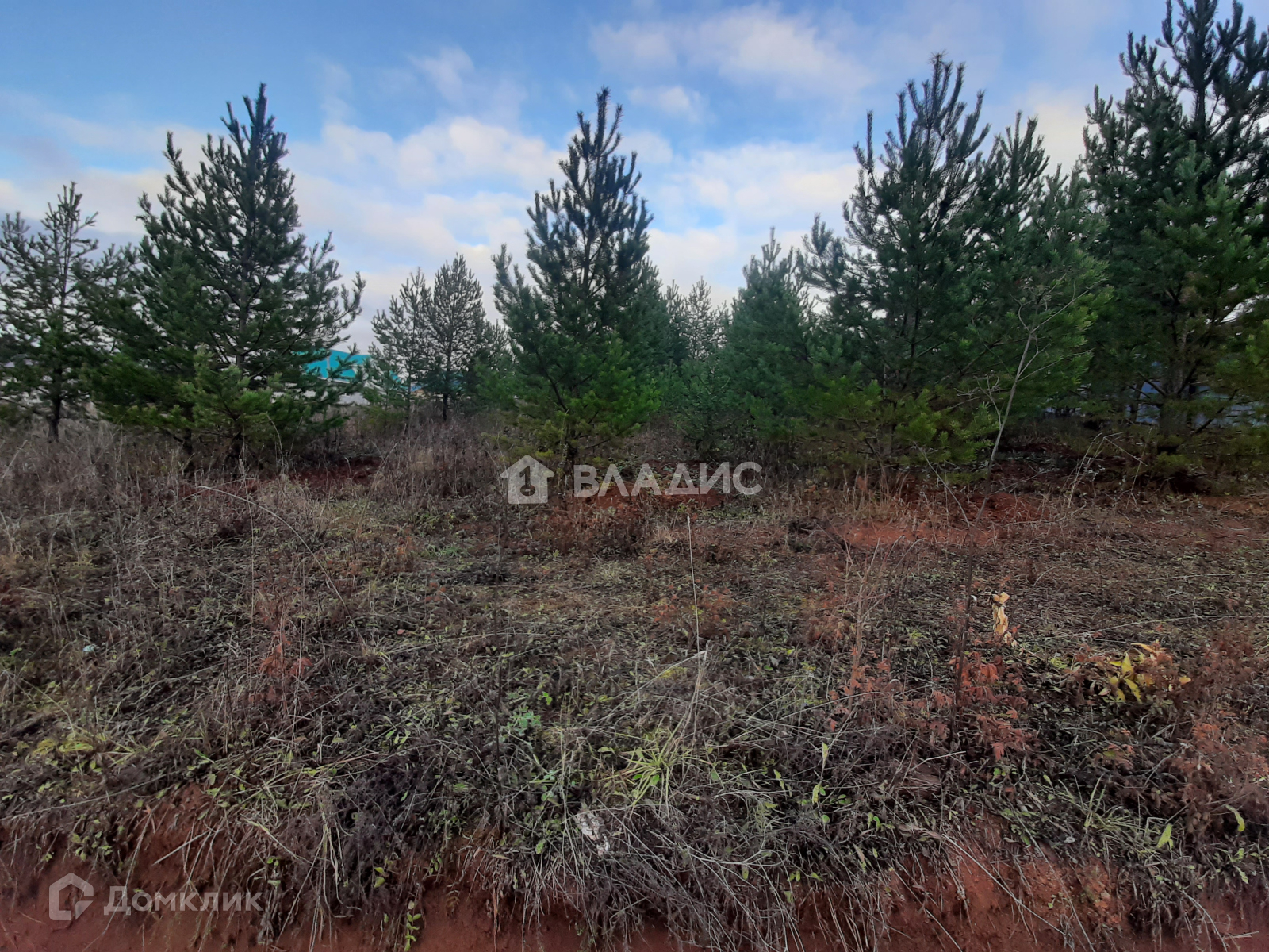 Участок сухой , с небольшой порослью красивых молодых хвойных деревьев .