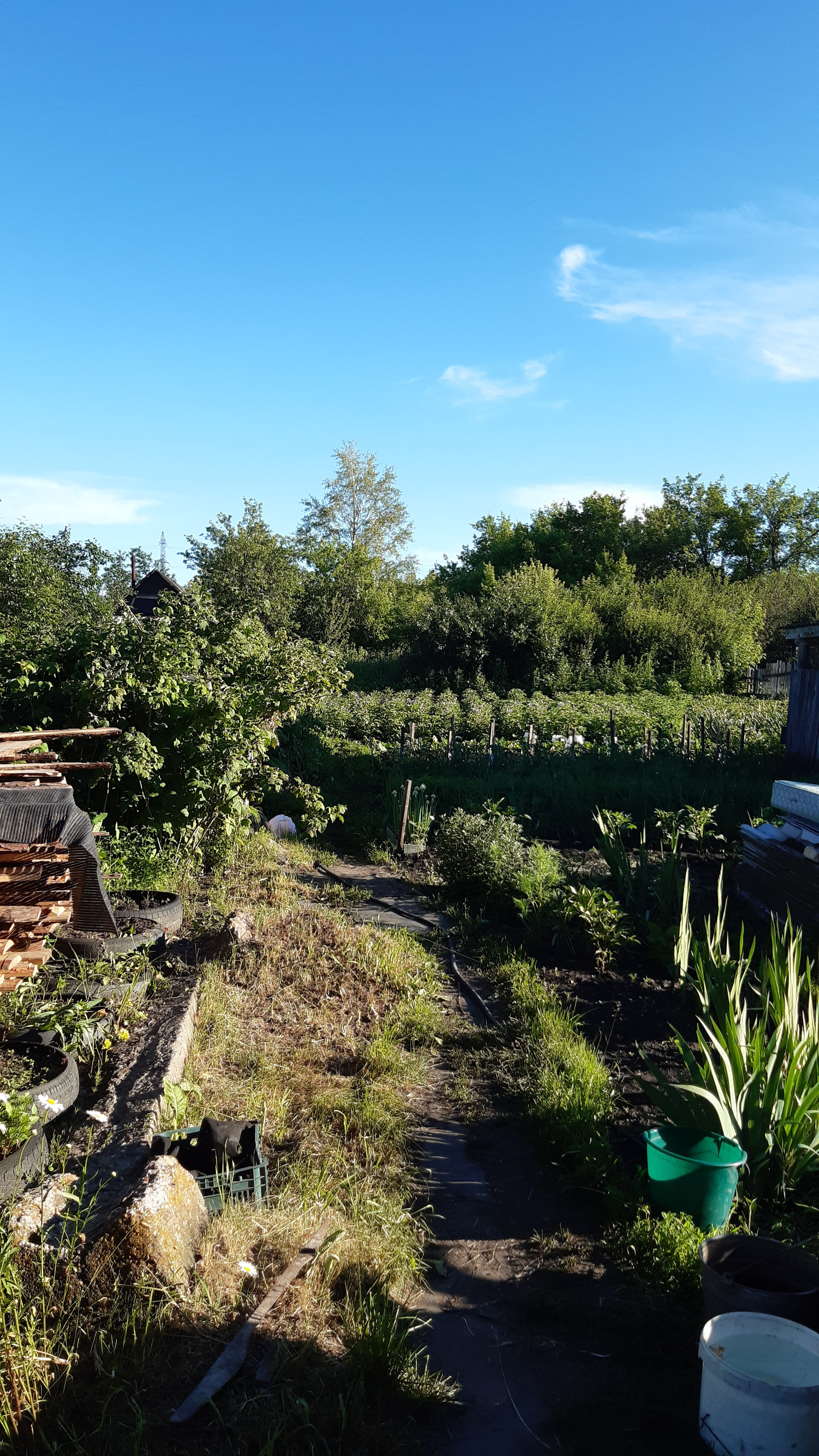 Посажены яблони, вишня, малина.
