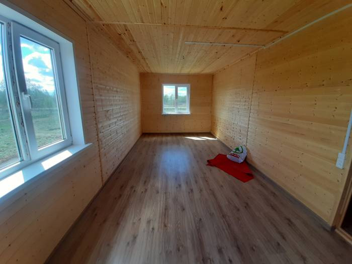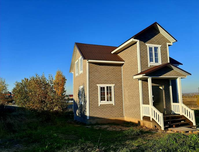 Дом для постоянного проживания. Функциональная планировка: на первом этаже просторная кухня – гостиная, спальня, тамбур и санузел. На втором этаже 4 раздельные комнаты.