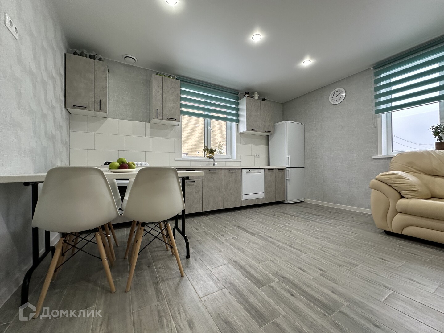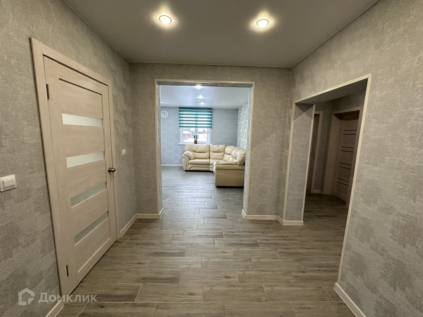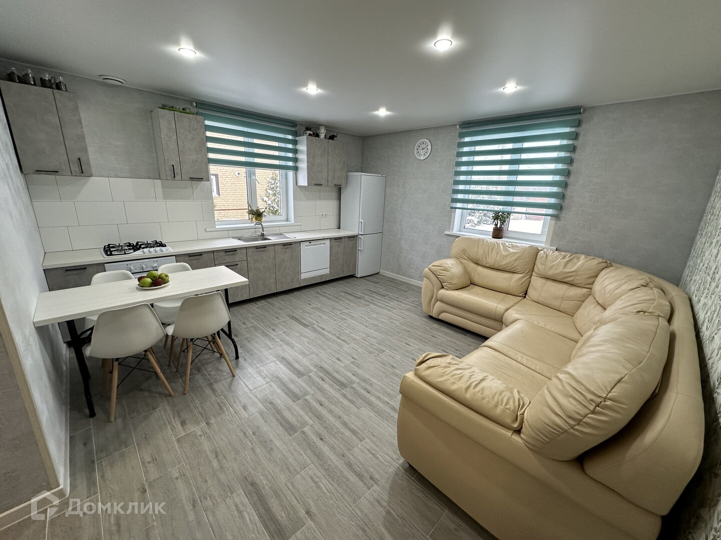 В доме прихожая, котельная, большой холл, коридор, раздельный санузел, гардеробная, три изолированные комнаты, просторная кухня-гостинная.