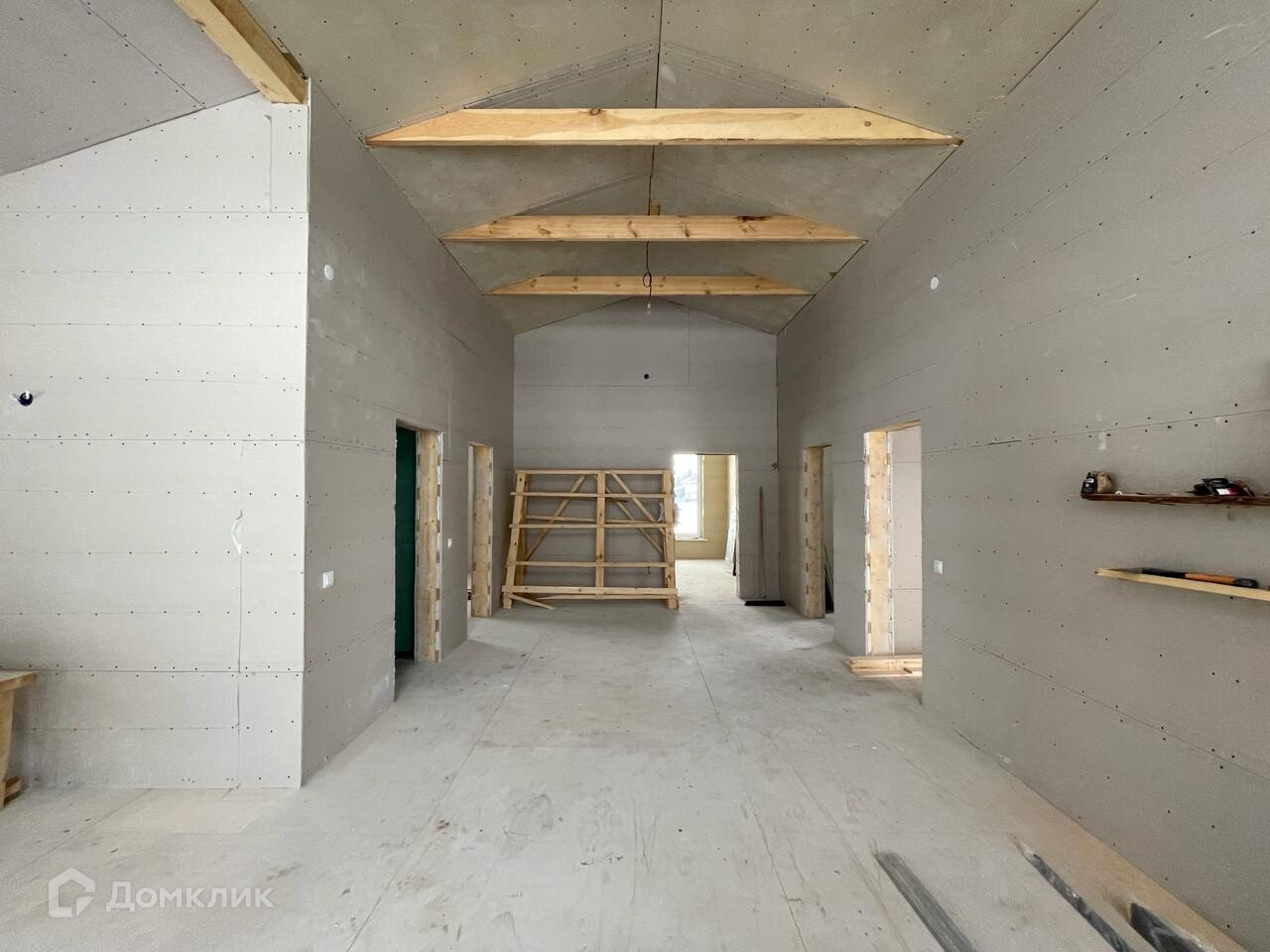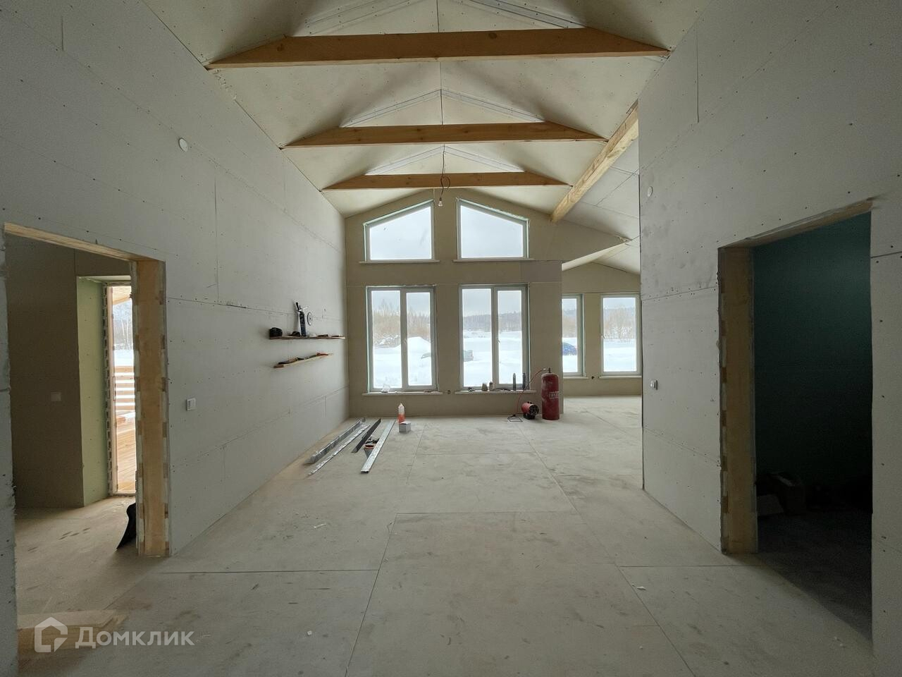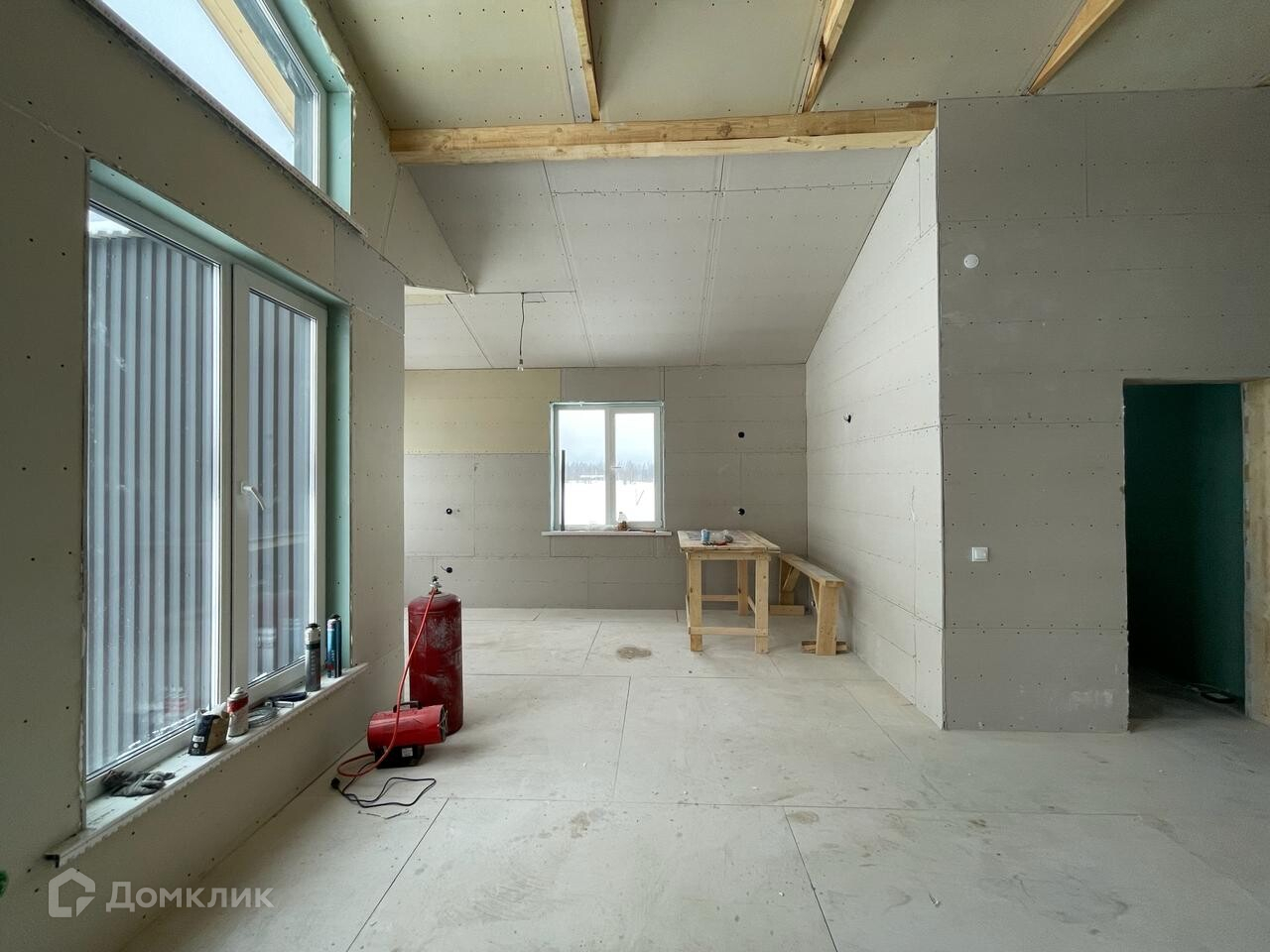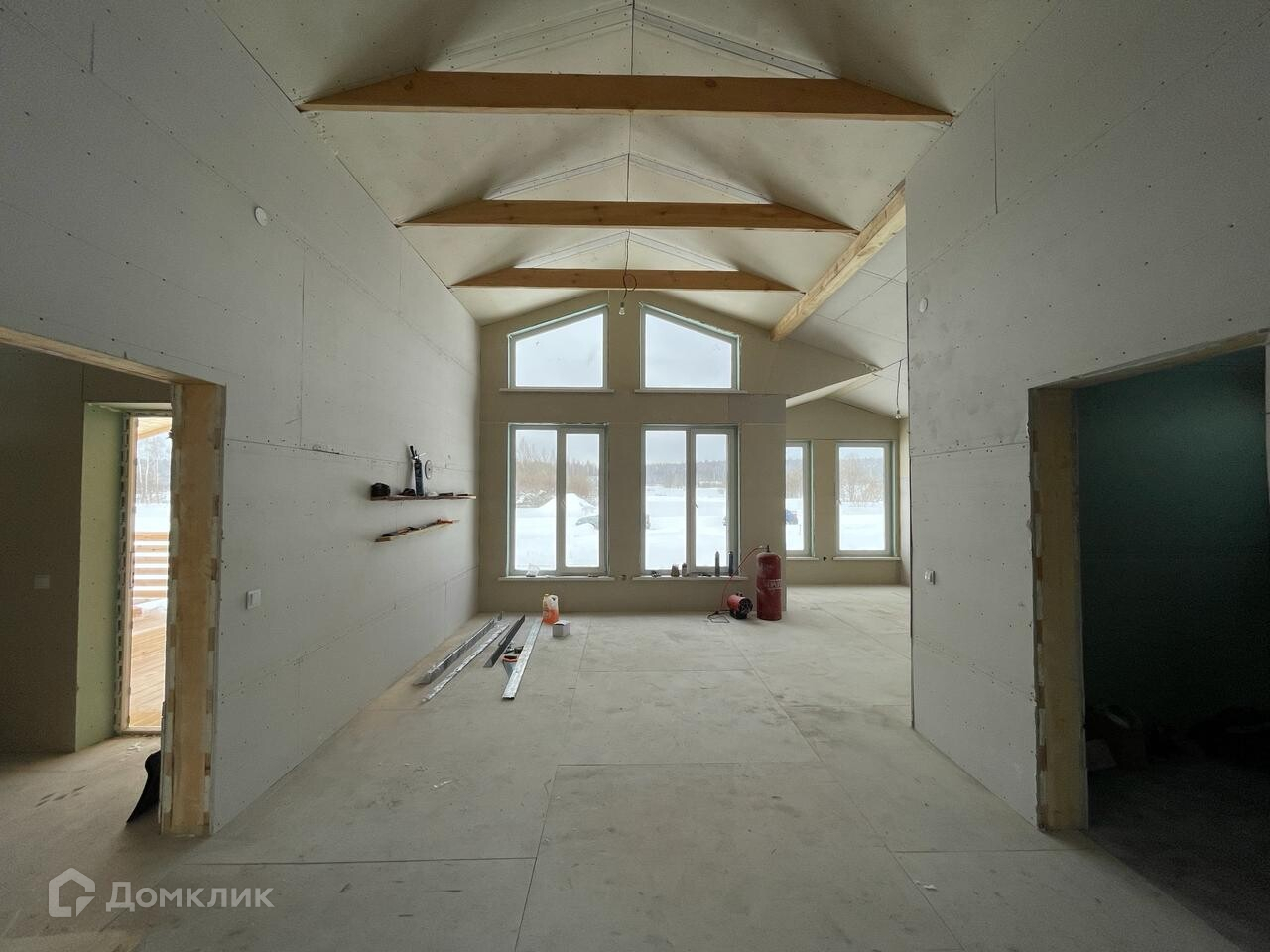 Планировка: в доме 3 спальни, прихожая, санузел, просторная кухня-гостиная с большими окнами и очень высокими потолками (второй свет).