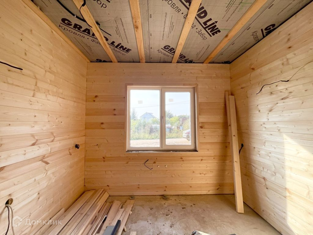 Фундамент - плита, внутренняя отделка имитация бруса, снаружи - железный сайдинг.