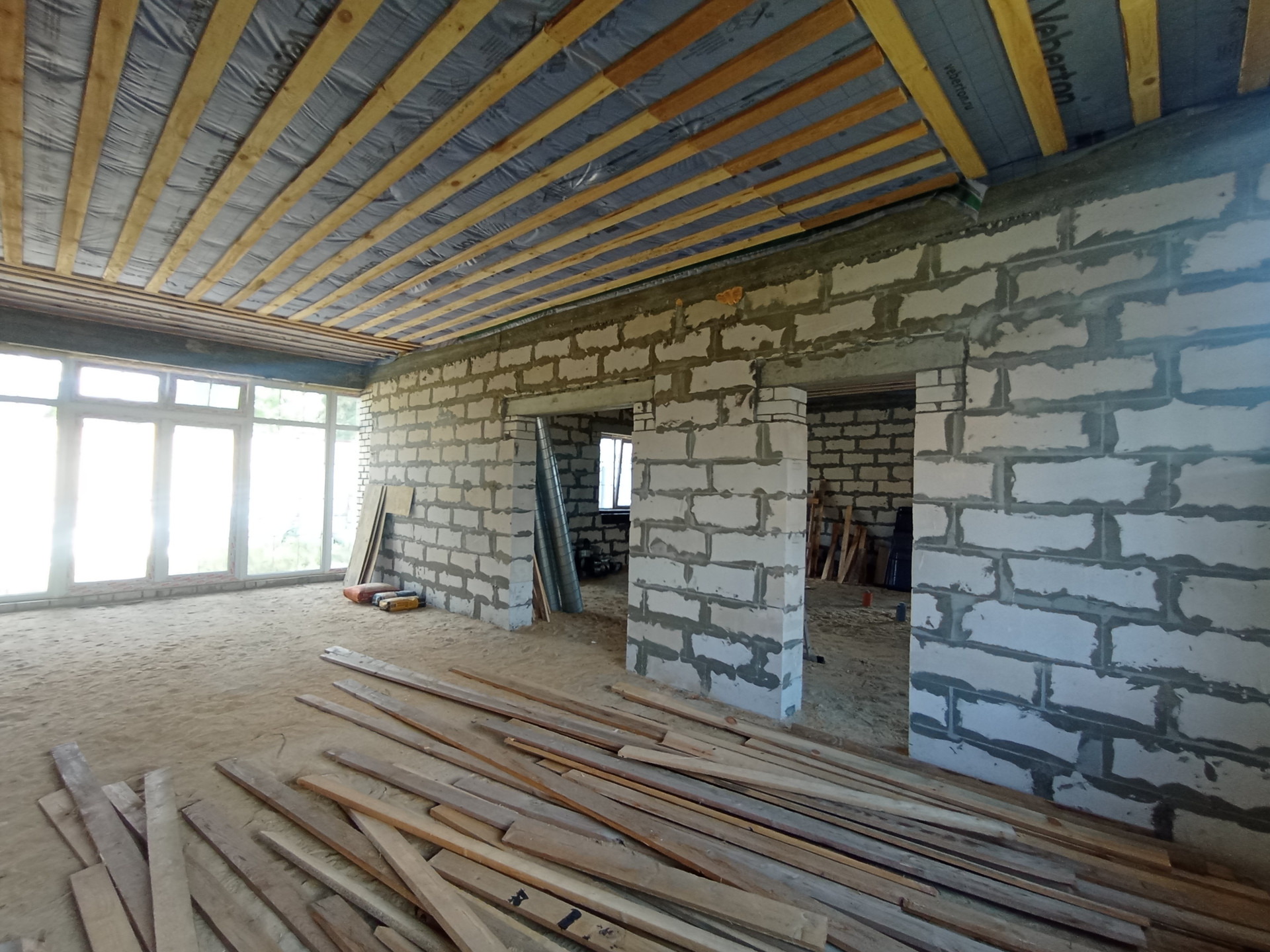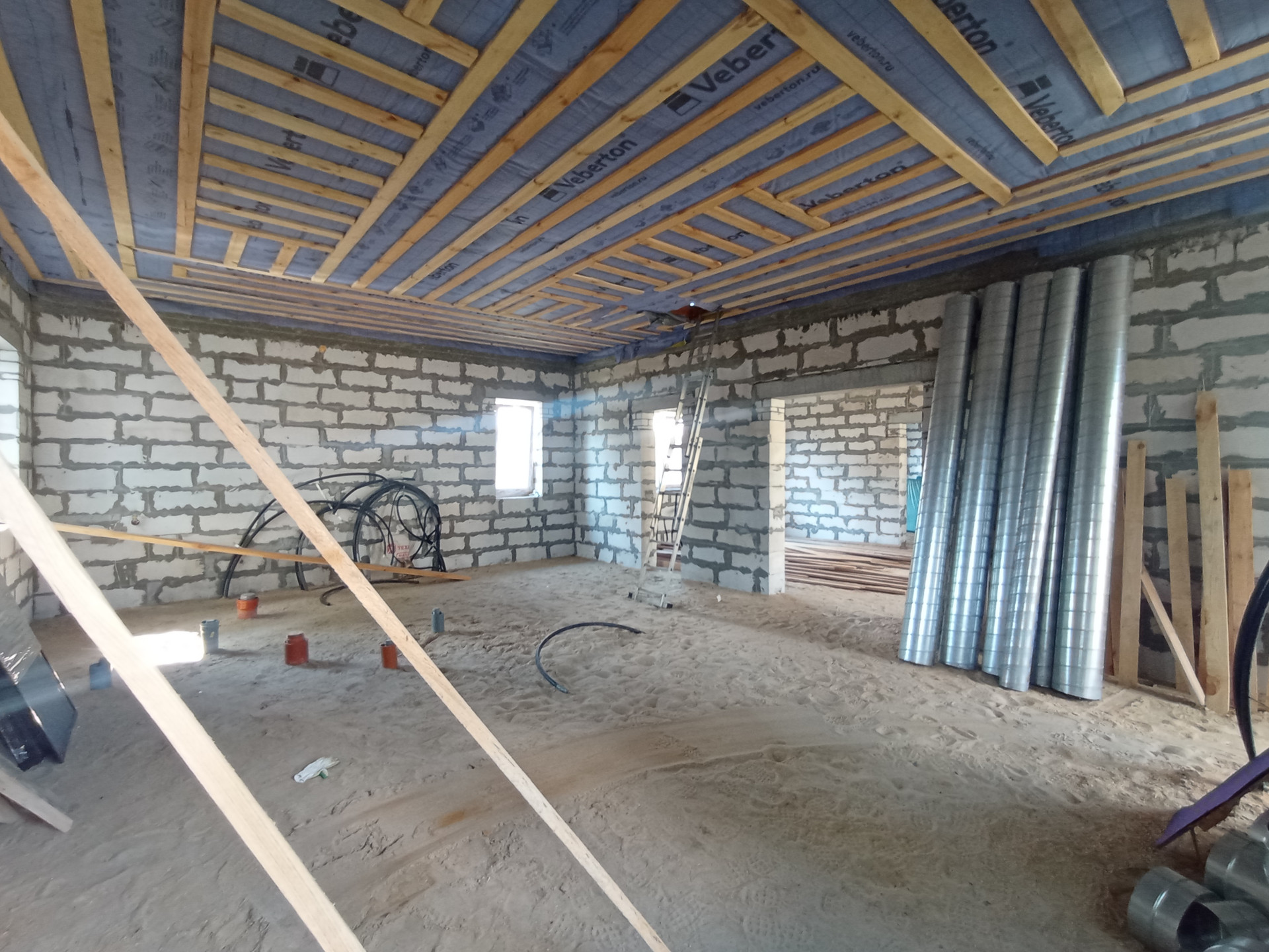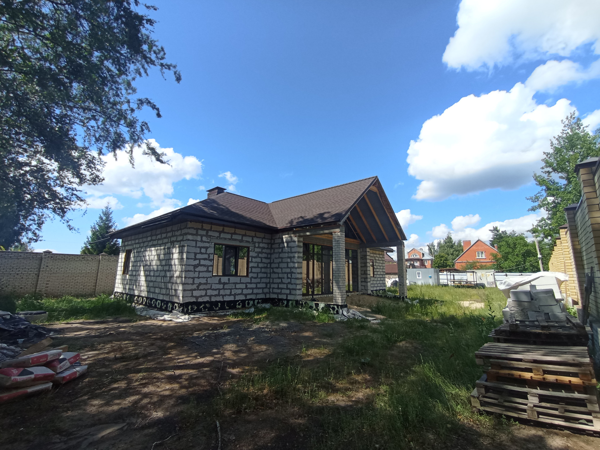 Дом спроектирован с учётом современных требований. Кладка стен выполнена из (газосиликатных блоков плотностью D500)