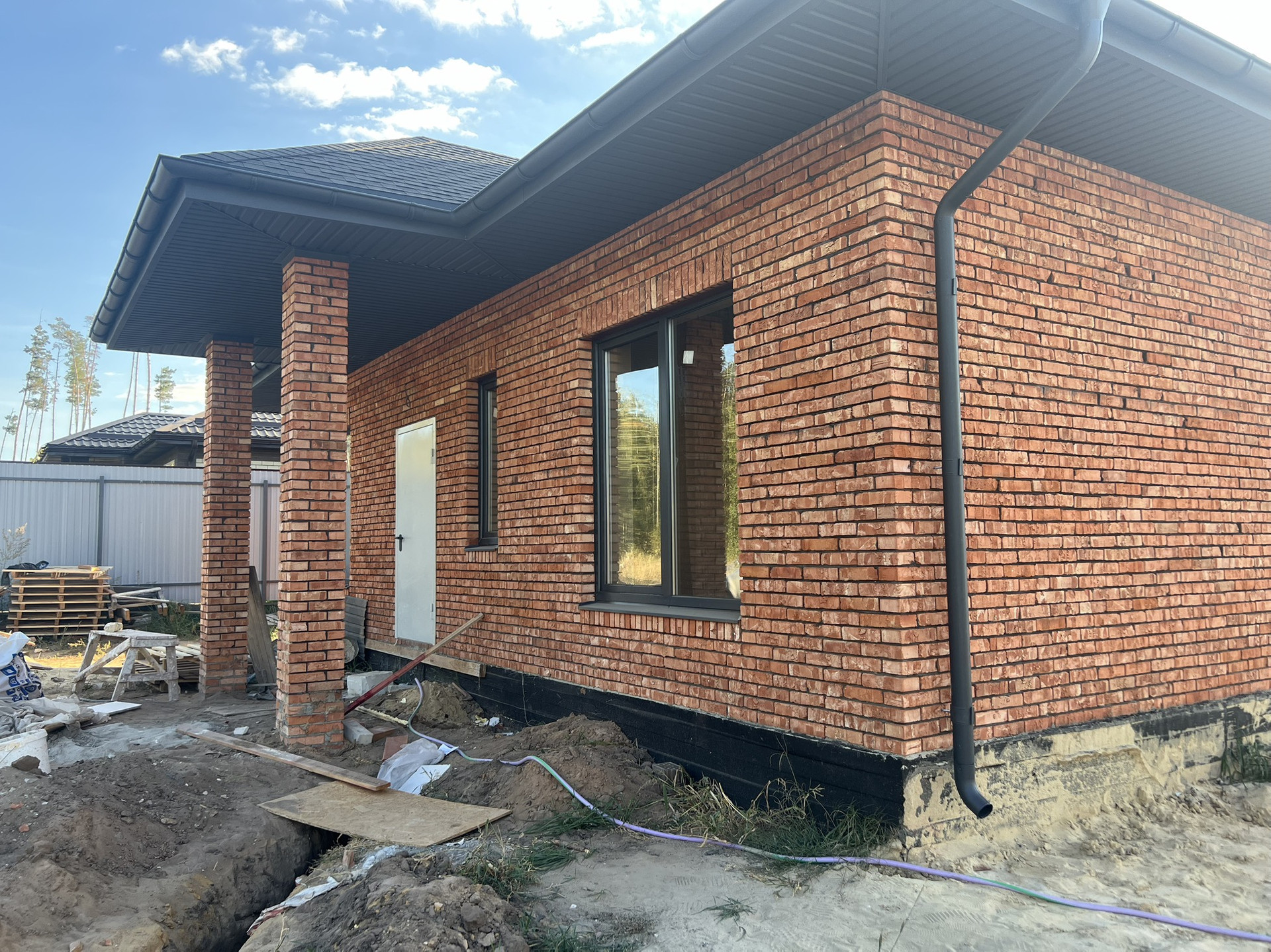 Дом по индивидуальному проекту в стиле лофт. Все материалы подобраны высококачественных производителей. Кирпич по спецзаказу, окна с ламинацией, тонировкой фурнитурой Roto - по-во Германия, входная дверь металлическая с терморазрывом. Кровля из гибкой черепицы Shinglas. Все коммуникации. Отопление, водоснабжение, септик, электрика - выполнены.